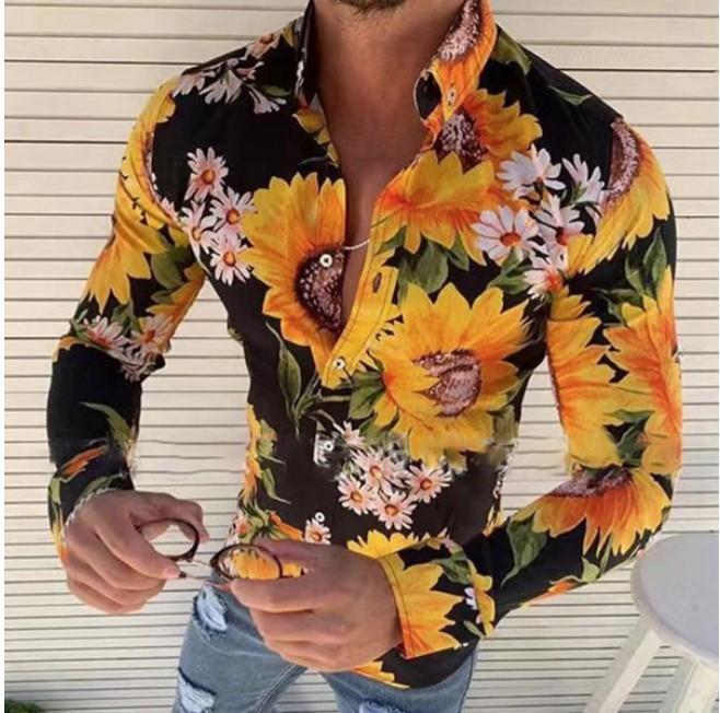 Transfronterizo 2025 primavera y otoño nuevo estilo de los hombres europeos y americanos más el tamaño de la camisa con estampado de plantas de rosas de manga larga