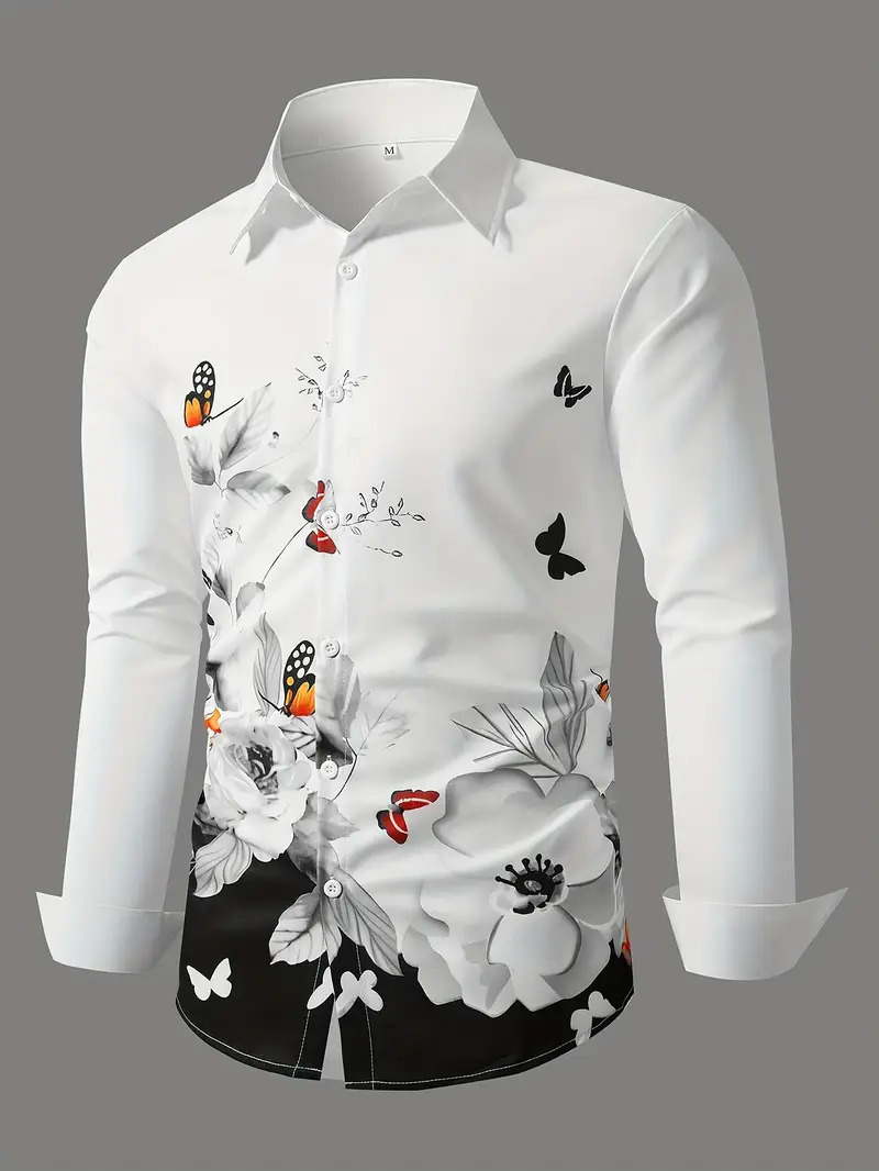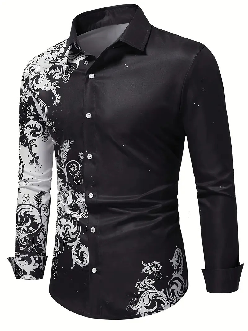 Comercio exterior europeo y americano transfronterizo 2024 nuevo estilo casual de moda salvaje patrón de planta camisa de manga larga para hombre MB12