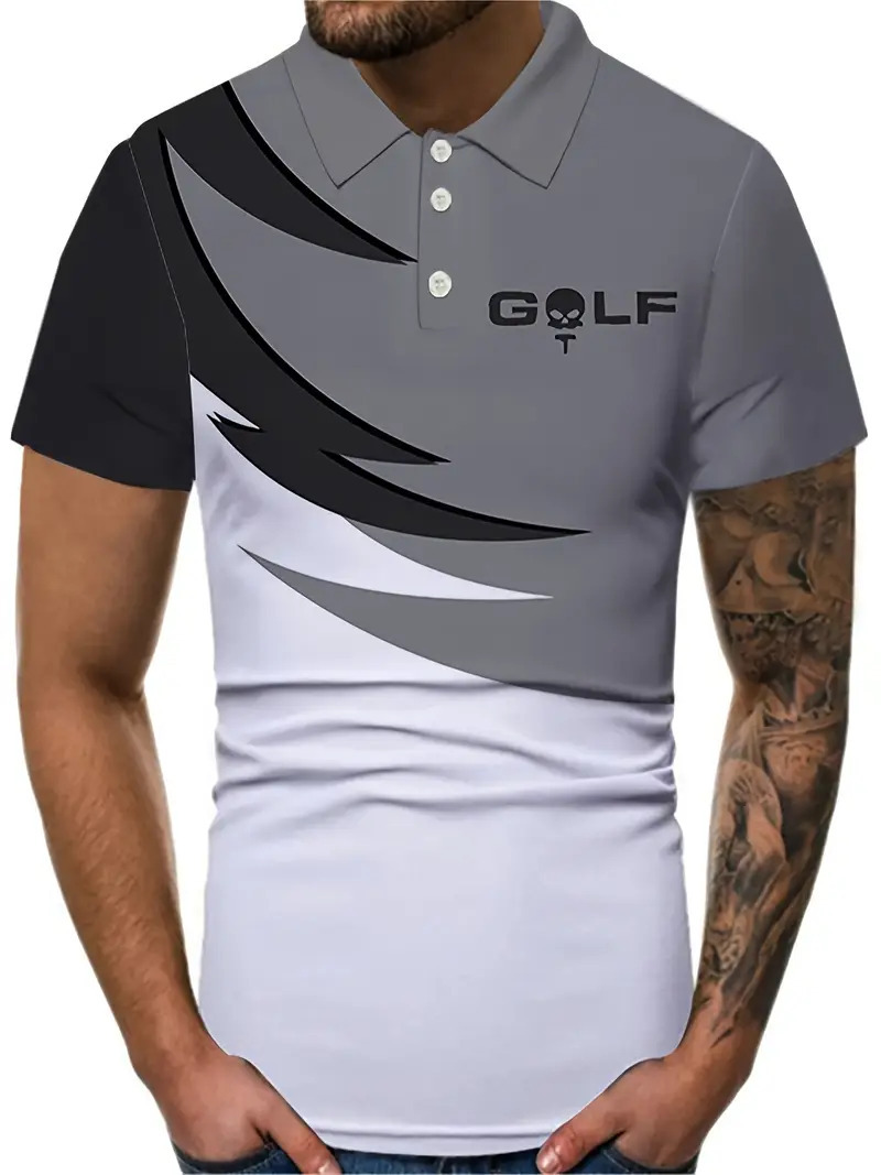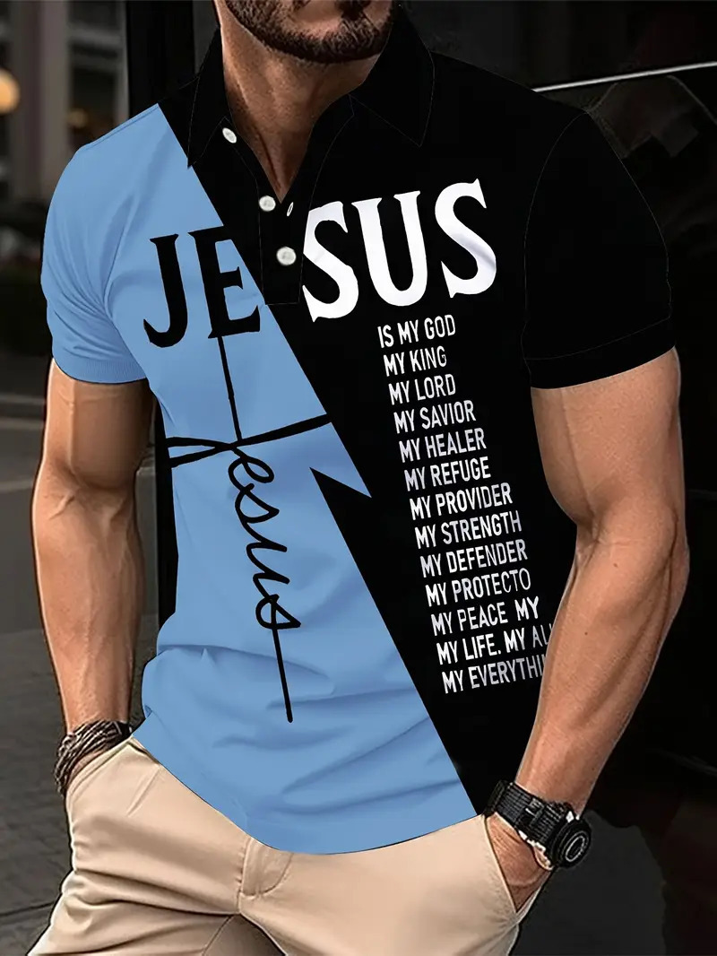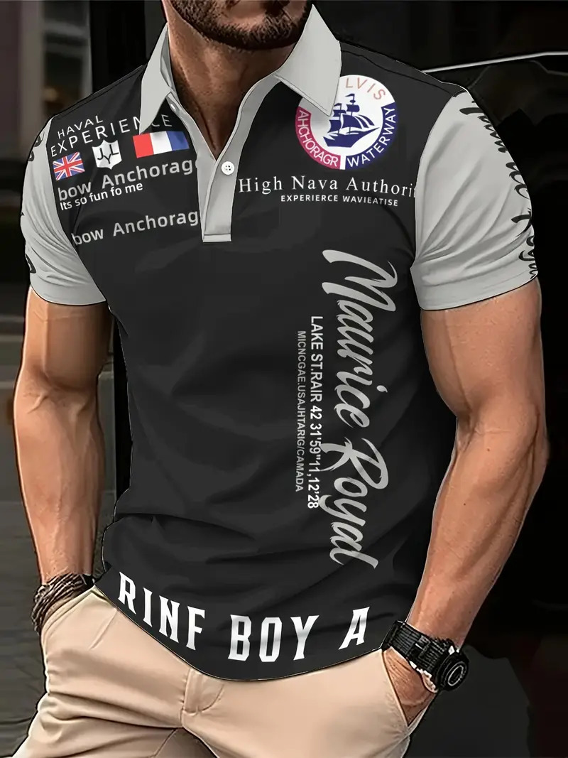 Hombre europeo y americano casual transfronterizo delgado hombre letras a juego de colores impresión digital solapa de manga corta poloMB13
