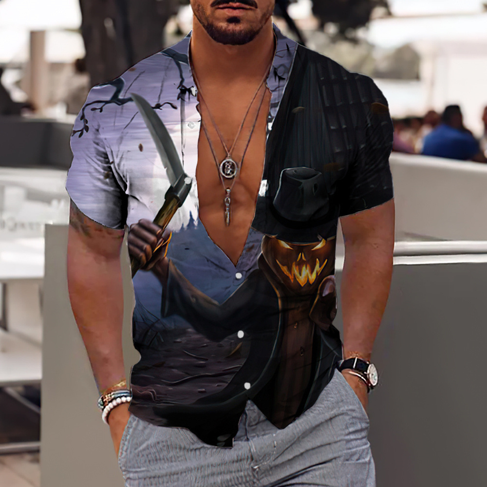 Camisa 3D para hombres transfronterizos Estación independiente Serie de Halloween Camisa hawaiana impresa digital 3D Fabricante de origen masculino