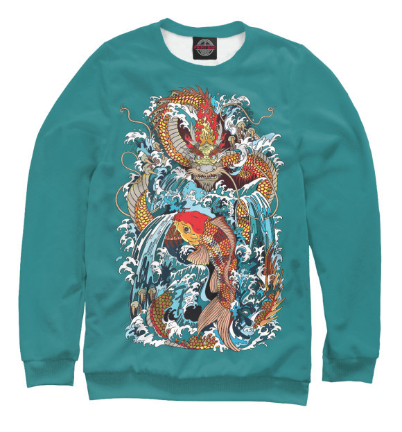 Rusia venta caliente tinta koi impresión 3D hombres y mujeres con el mismo estilo suelto manga larga hombro suéter de cuello redondo