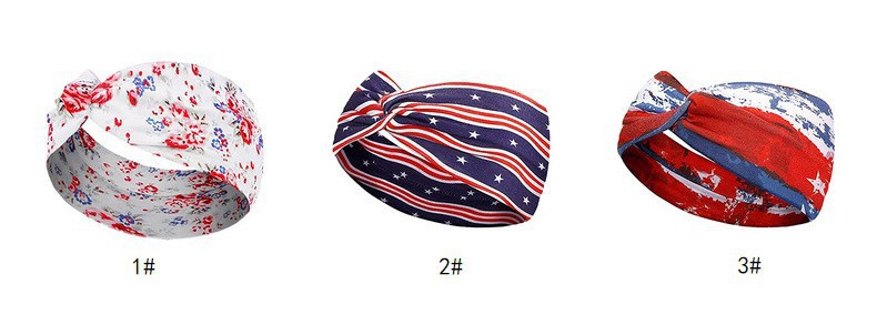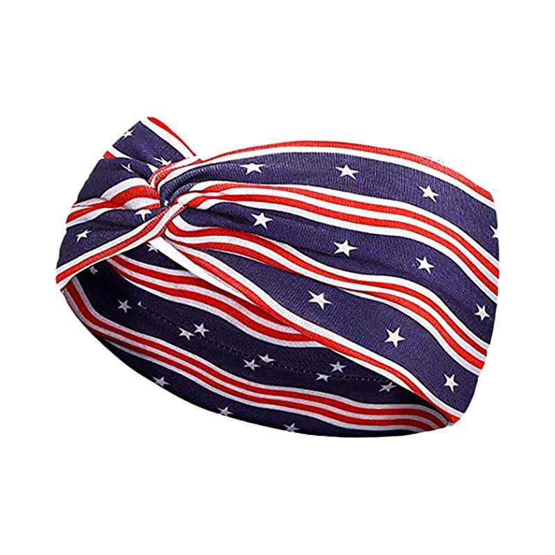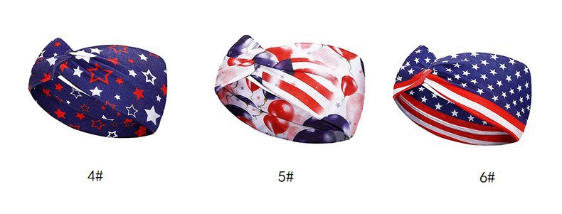 Bandera de EE. UU. Día de la Independencia Estrella Elemento Retro nudo Absorbente Yoga Correr Traje para el cabello Correa para la cabeza