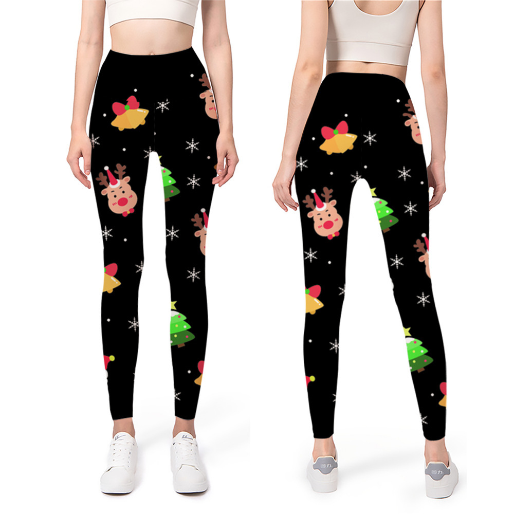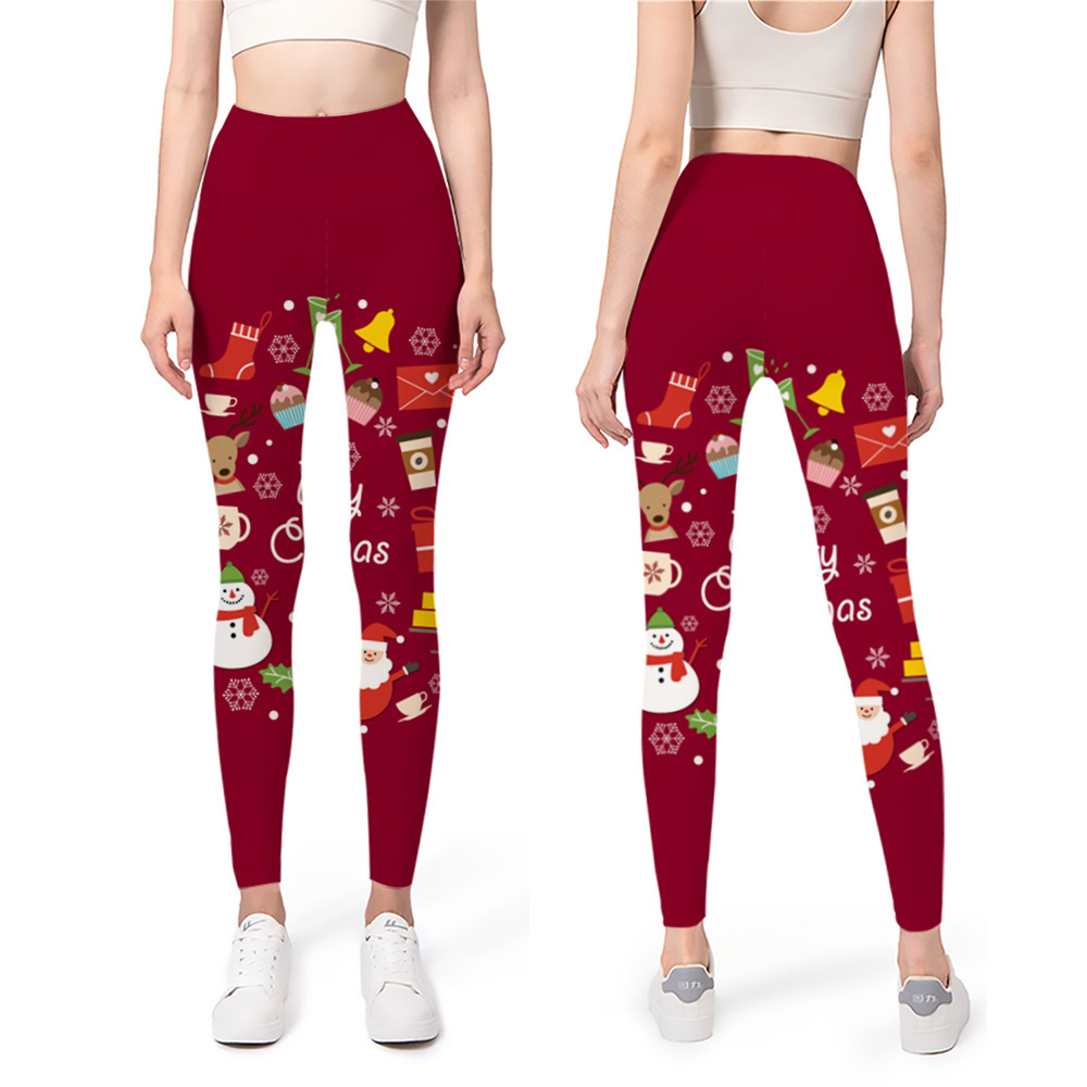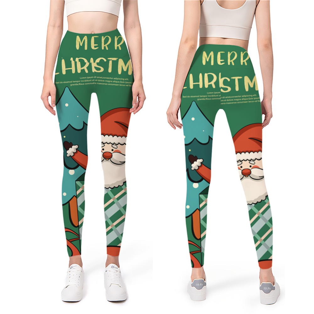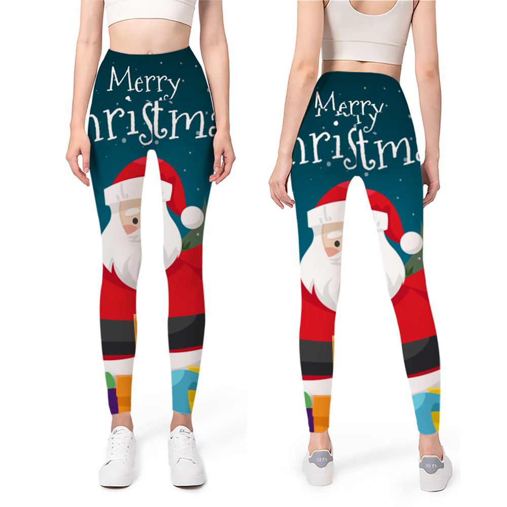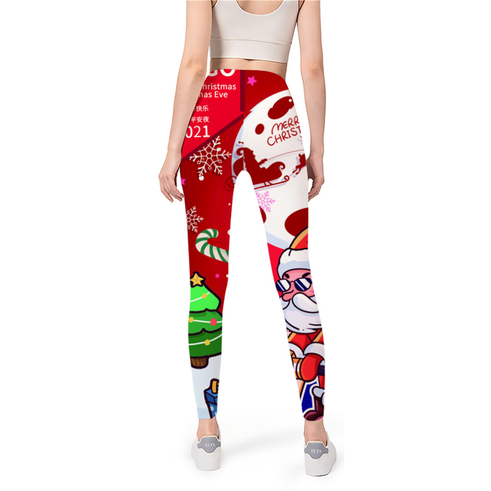 Impresión digital nuevo yoga europeo y americano con base elástica 2024 pantalones de Navidad pantalones de cintura 3D