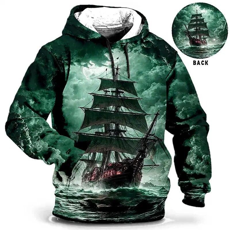 Sudadera con capucha con estampado digital de estilo antiguo retro de estilo europeo, casual y cómodo para el hogar diario MC11