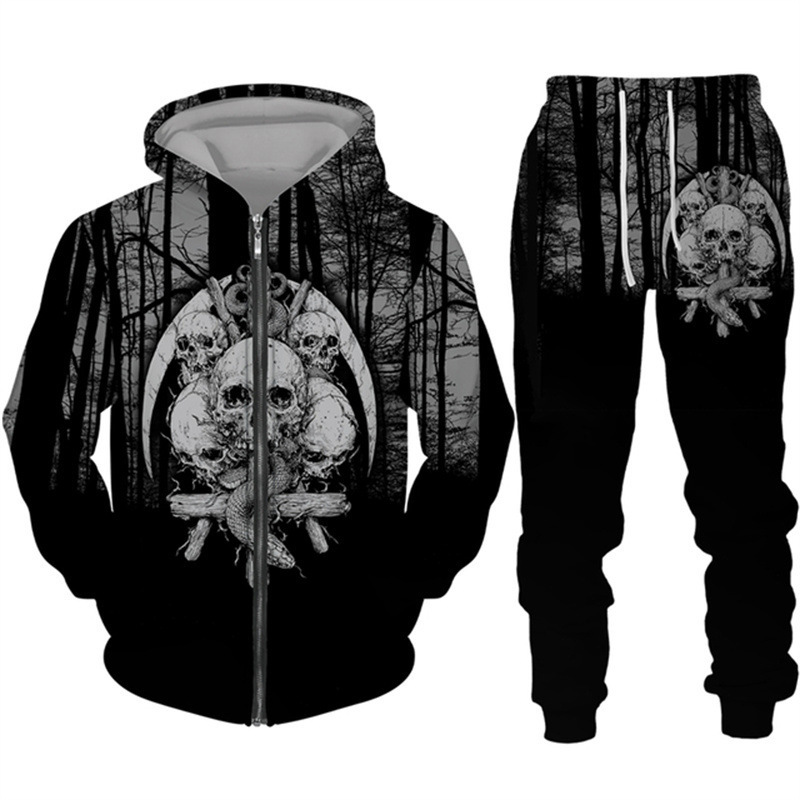 Comercio exterior transfronterizo impresión digital 3D chaqueta con capucha de calavera de terror de dos piezas para hombres europeos y americanos MF08-ML01
