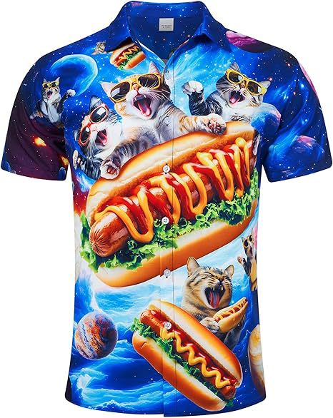 Divertido animal lindo 3D impresión digital hombre calle suelta salvaje manga corta solapa botón camisa hawaiana