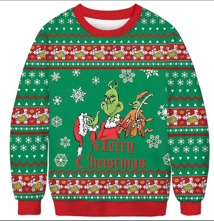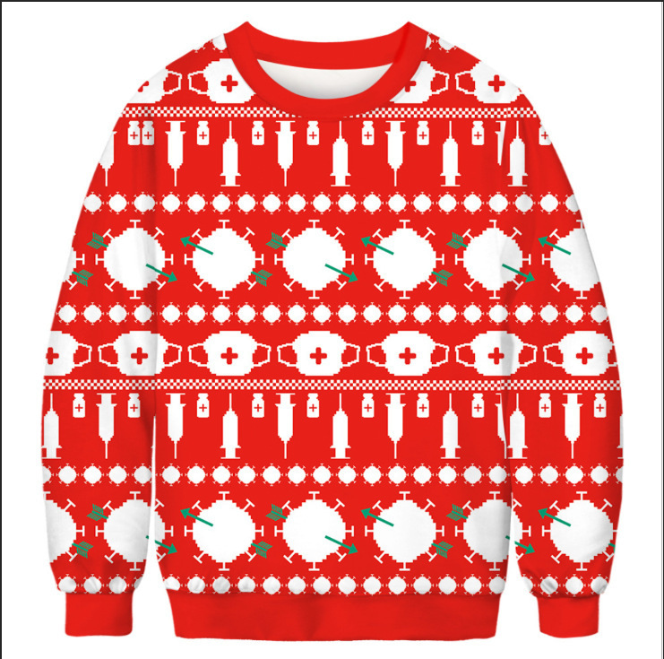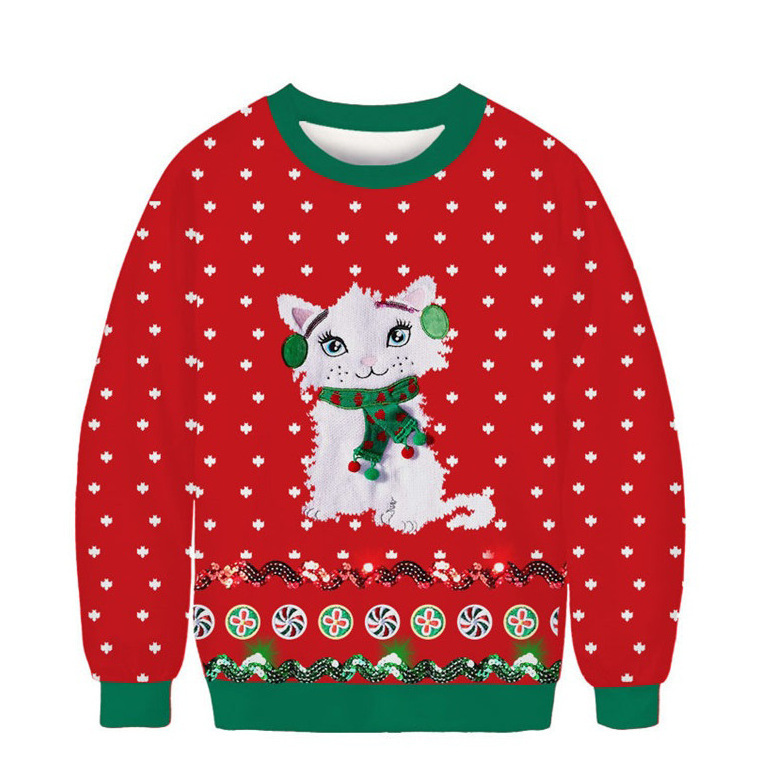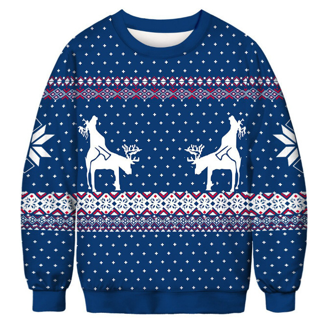 Transfronterizo europeo y americano 2024 Navidad HAPPY3D impresión digital pareja de hombres y mujeres suéter de cuello redondo para niños cabello de una pieza