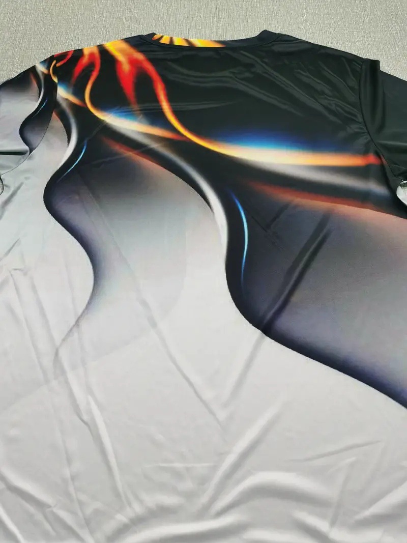 Camiseta de cuello redondo suelta y transpirable de manga corta de la calle para hombre Spot moda metal colorido halo impresión 3D