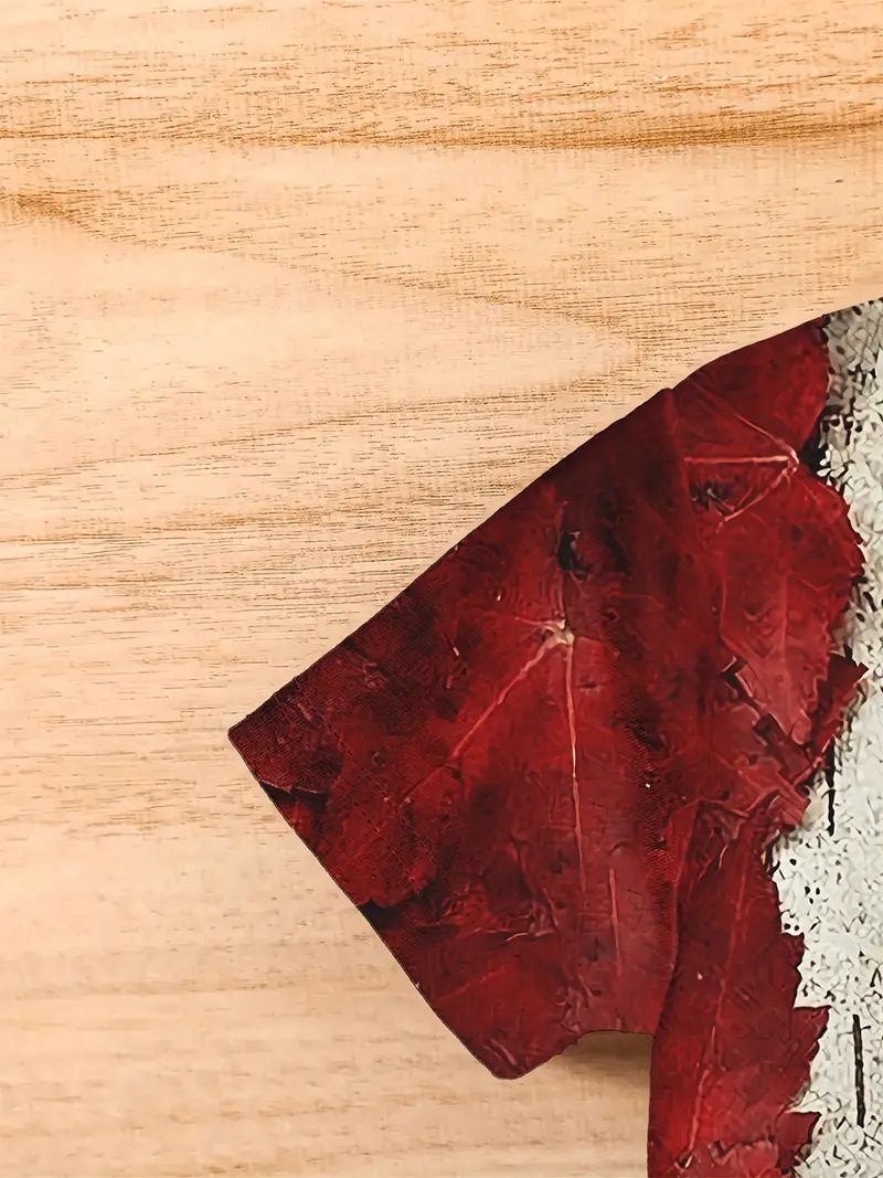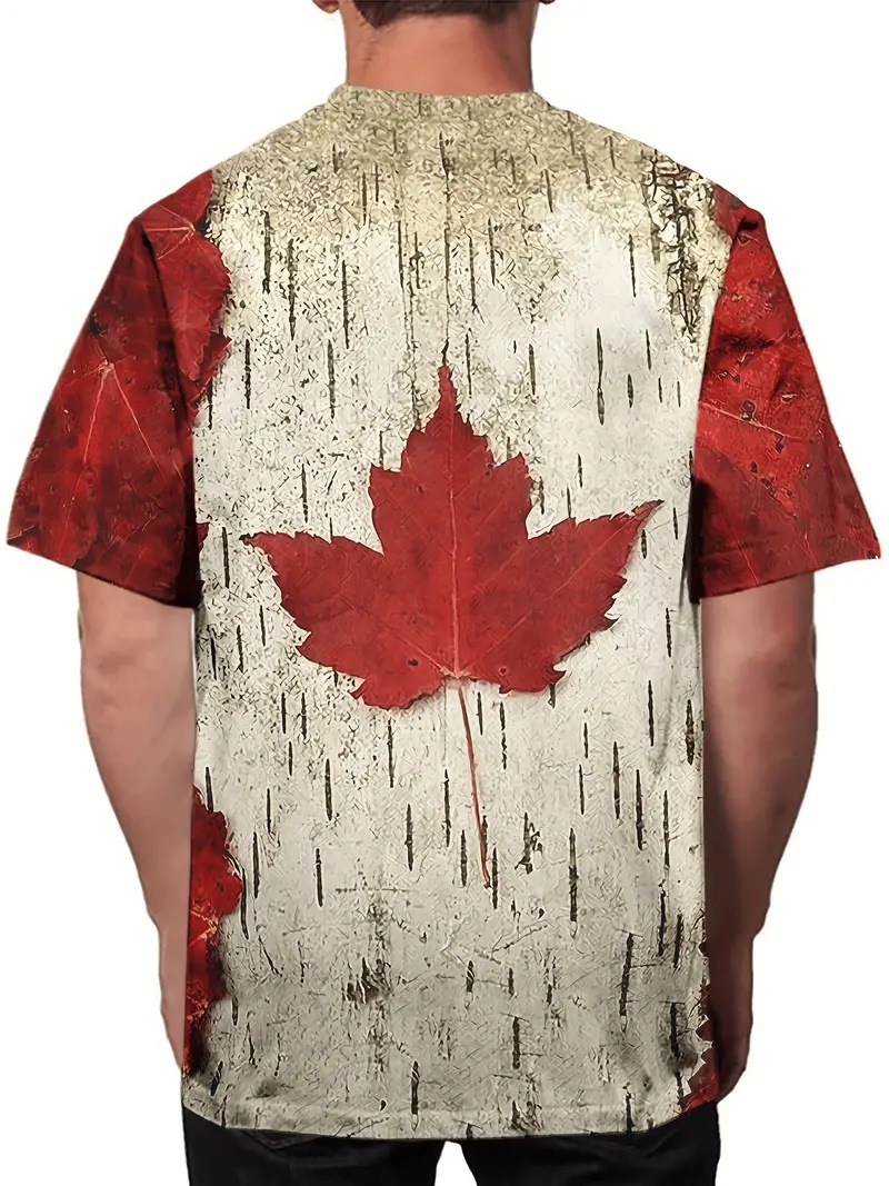 Camiseta de cuello redondo de manga corta transpirable de malla suelta de la calle principal con estampado 3D de hoja de arce de color de contraste abstracto retro de la calle principal para hombres