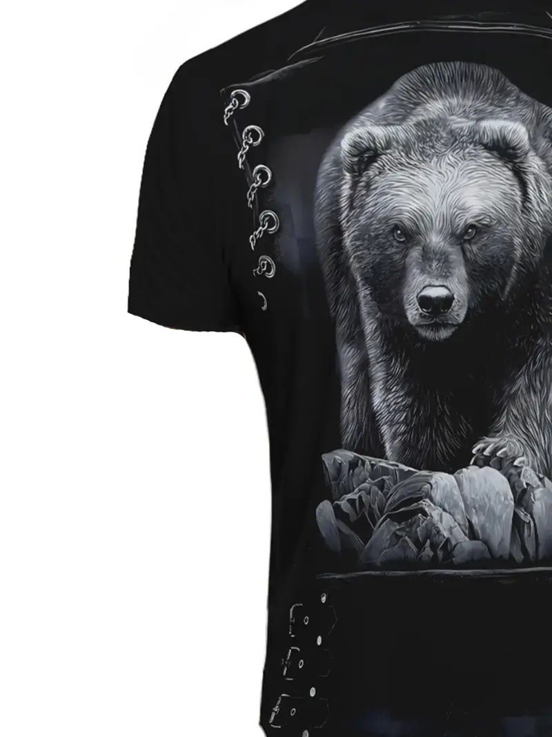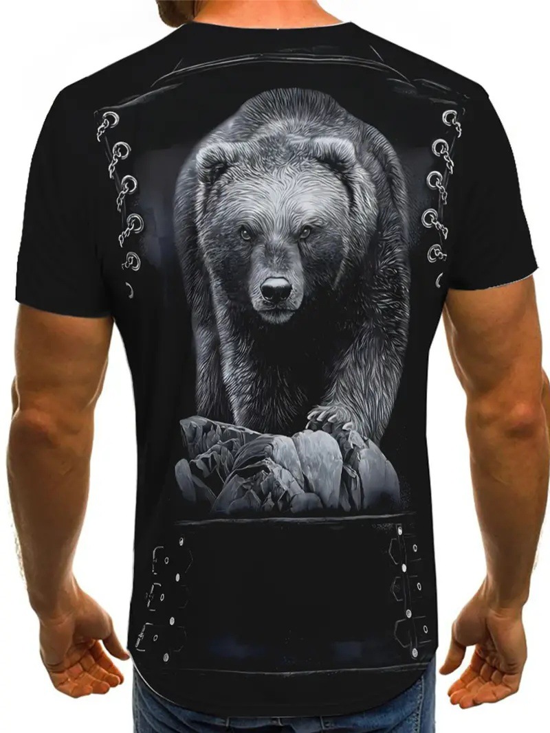 Europa y América AliExpress venta caliente oso blanco chaqueta de mezclilla estampado 3D camiseta de cuello redondo de manga corta de alta suelta de verano para hombres