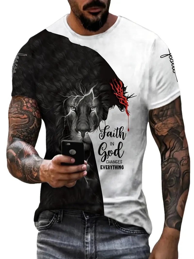 Eslóganes de Pascua transfronterizos europeos y americanos con estampado 3D para hombres, camiseta holgada y transpirable de manga corta con cuello redondo