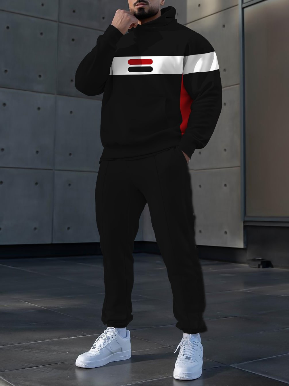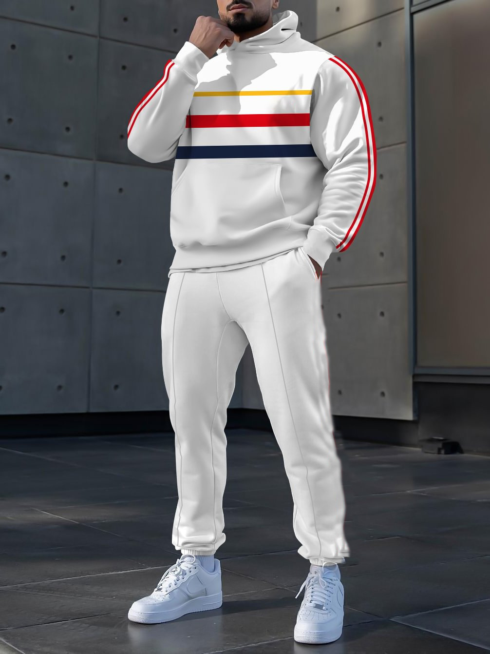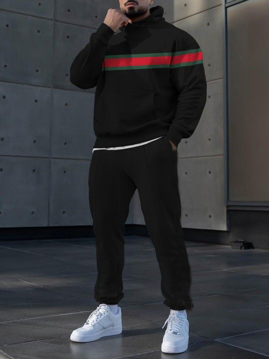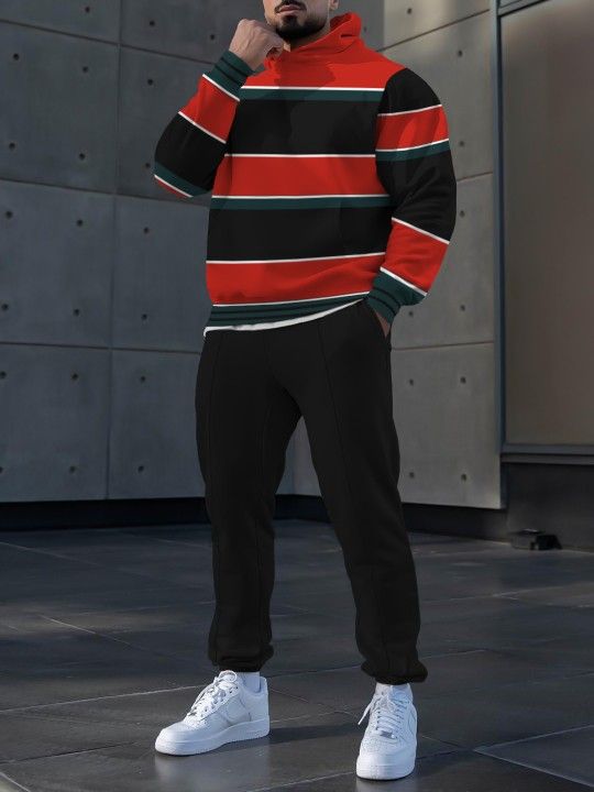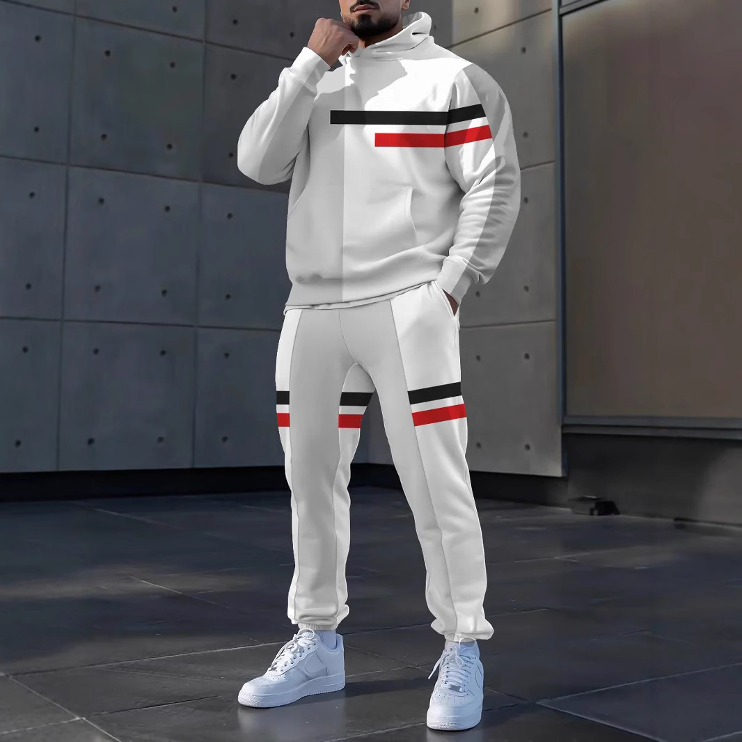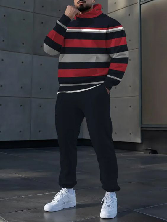 Pantalones de suéter con capucha de estilo personalizado de dos piezas con estampado digital a rayas clásico MC11-ML1