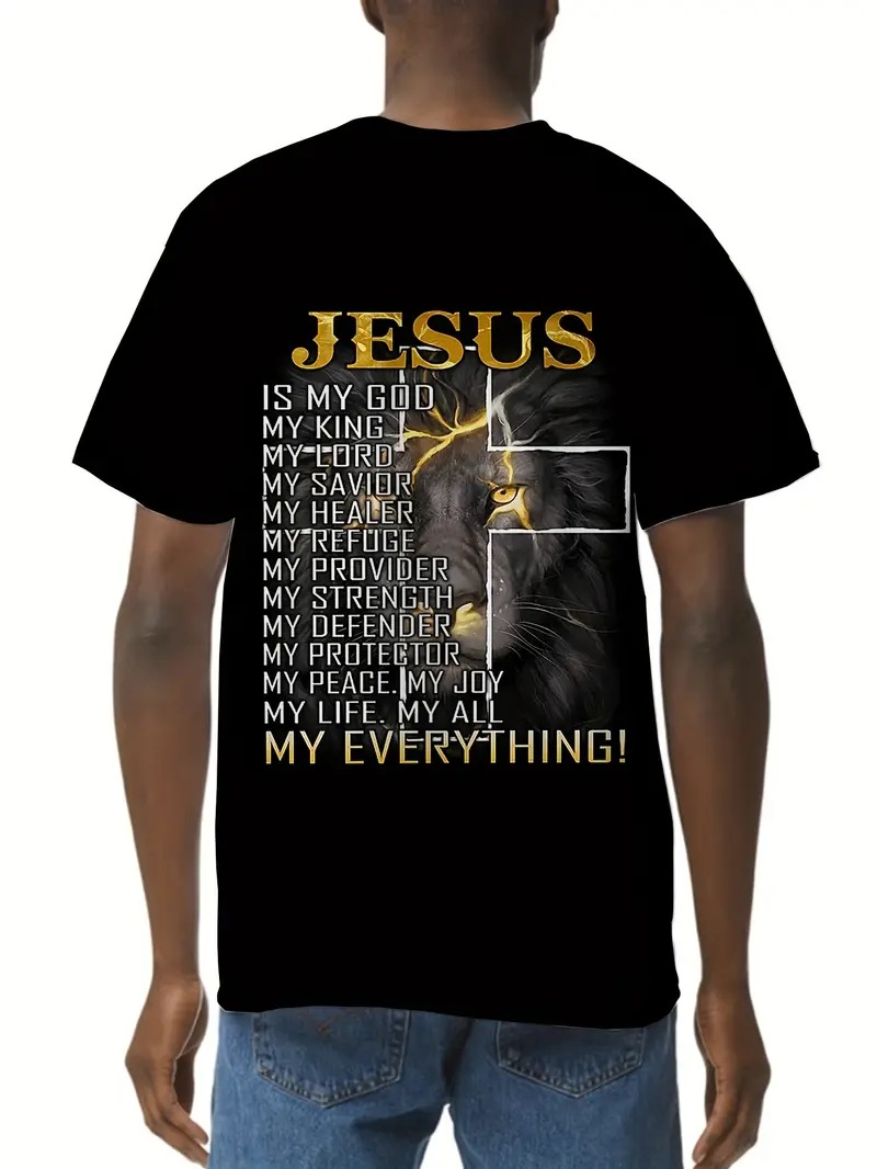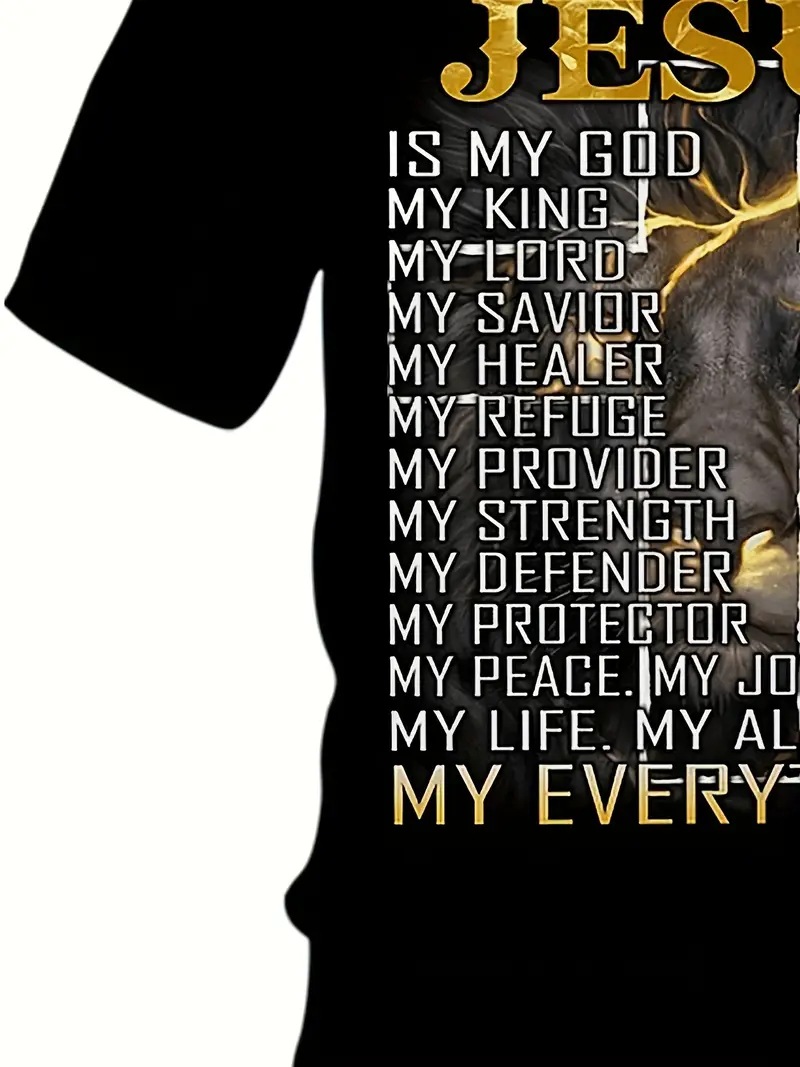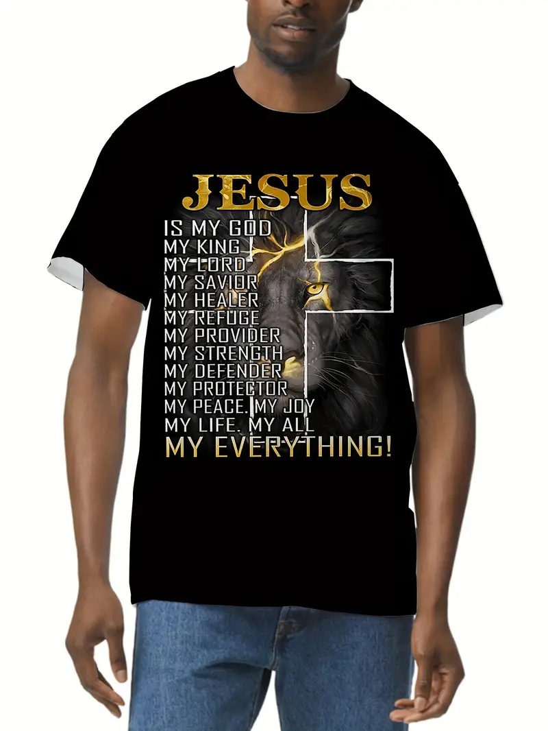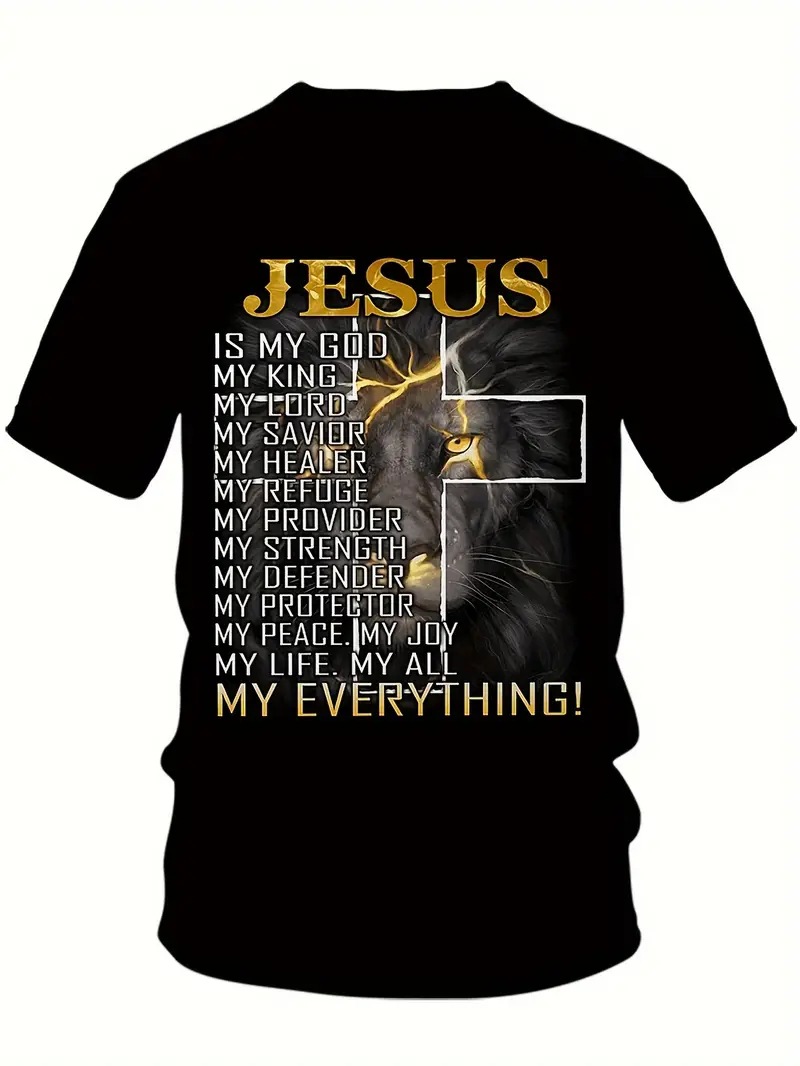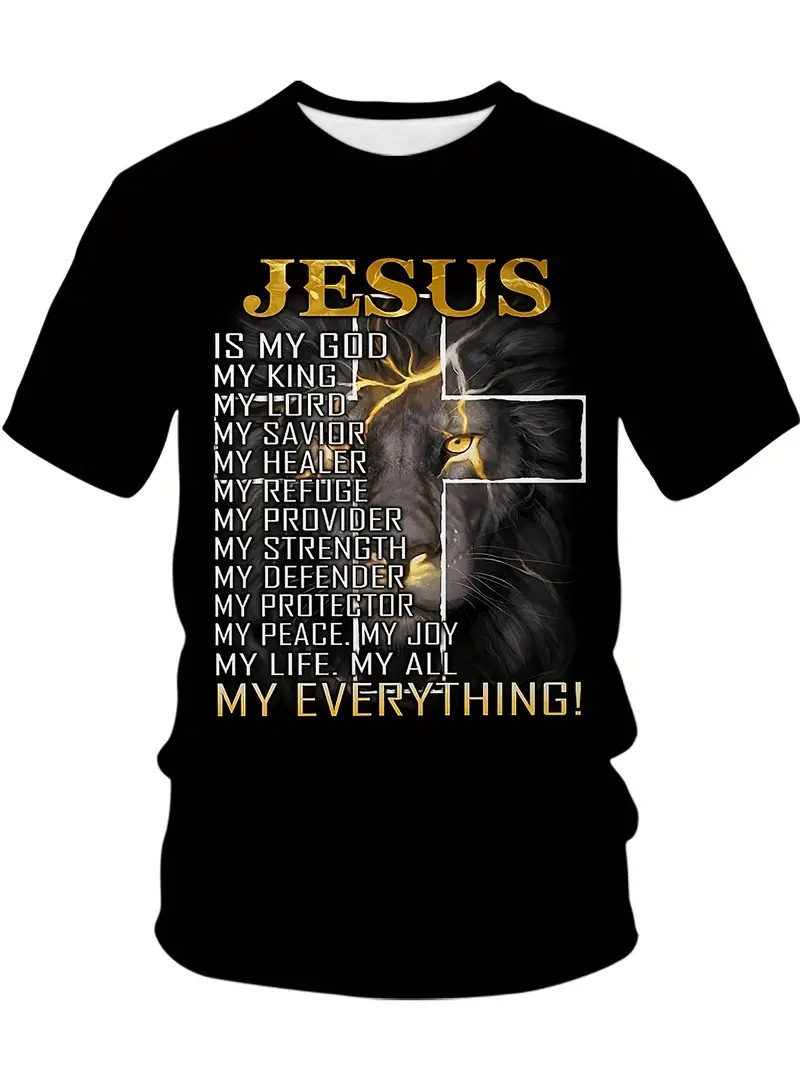 Lightning Lion Pascua Jesús Lema 3D Impreso Moda de verano para hombres Camiseta suelta transpirable de manga corta con cuello redondo