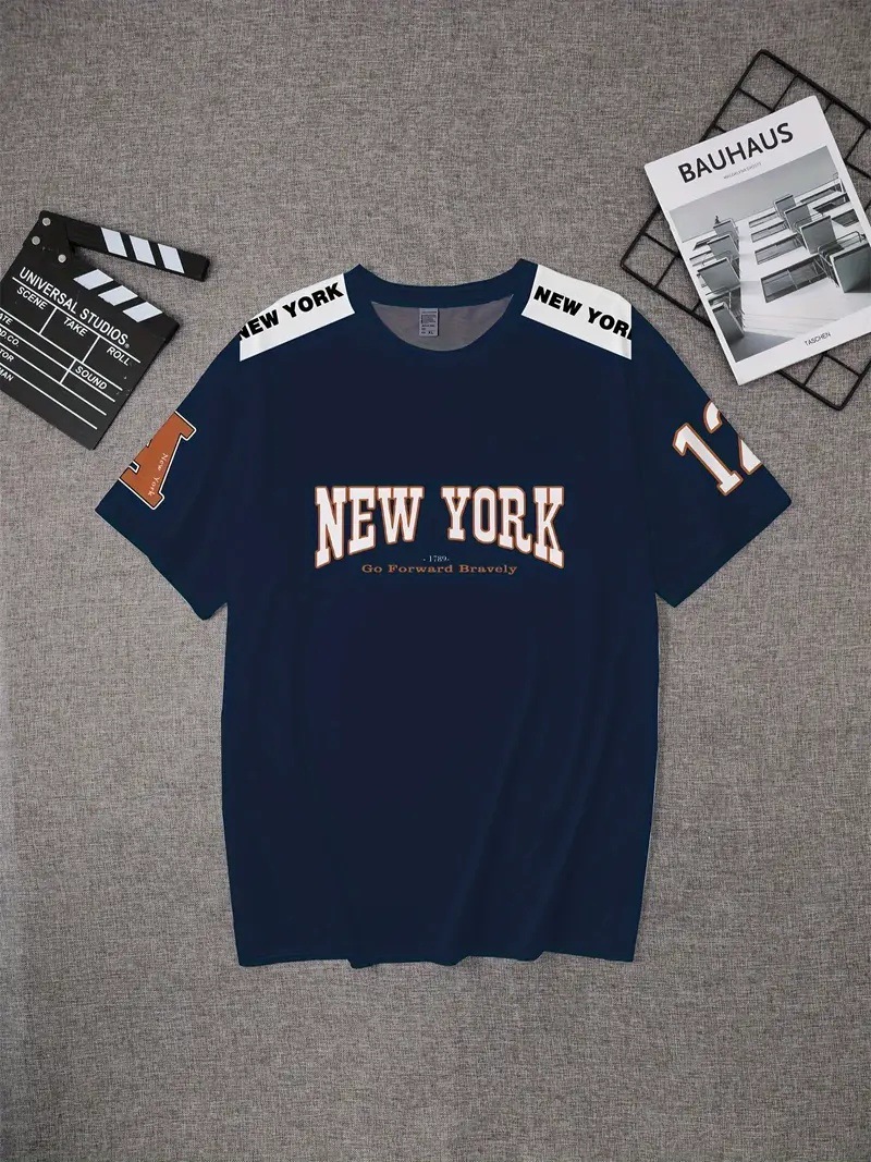2024 Venta caliente Nueva York Lema 3D impresión hombres calle alta malla suelta transpirable deportes de manga corta camiseta de cuello redondo