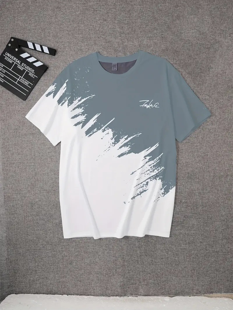Moda y simple eslogan de color de contraste estampado 3D de los hombres verano calle suelta transpirable manga corta manga corta cuello redondo camiseta