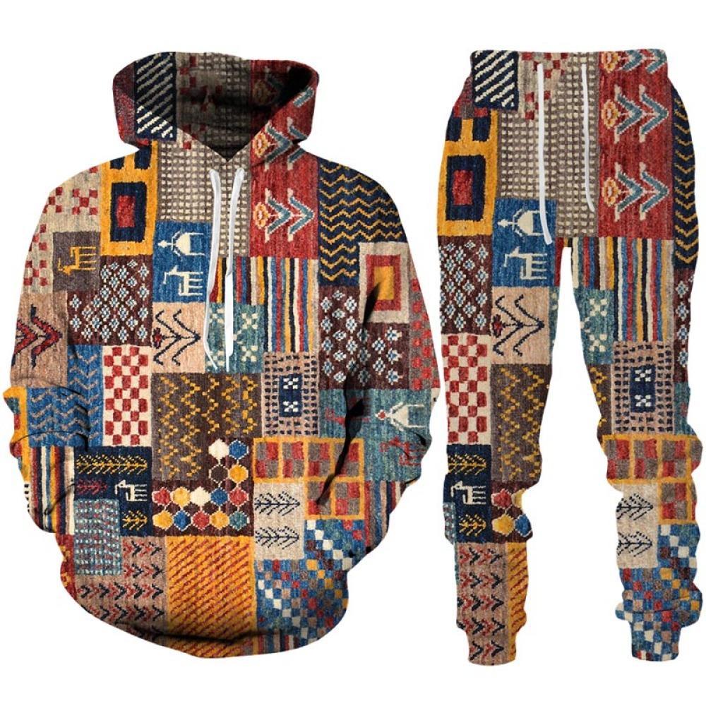 Traje de dos piezas de color de contraste de temperamento de moda venta caliente todo-fósforo talla grande suéter suelto pantalones MC11-ML1