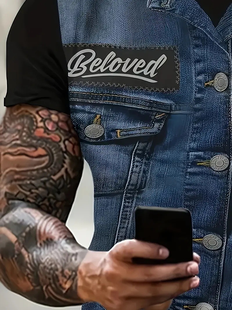 Divertida chaqueta de mezclilla con personalidad estampada en 3D, camiseta casual de cuello redondo de manga corta suelta y transpirable para hombre