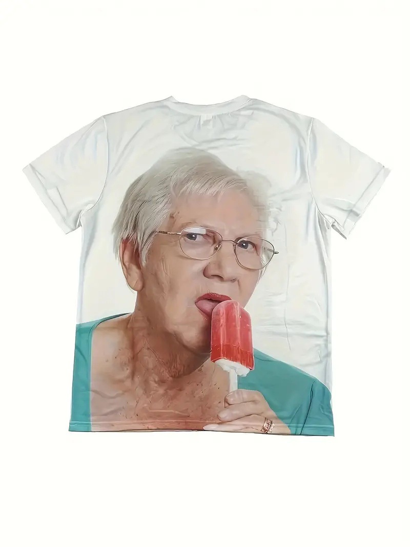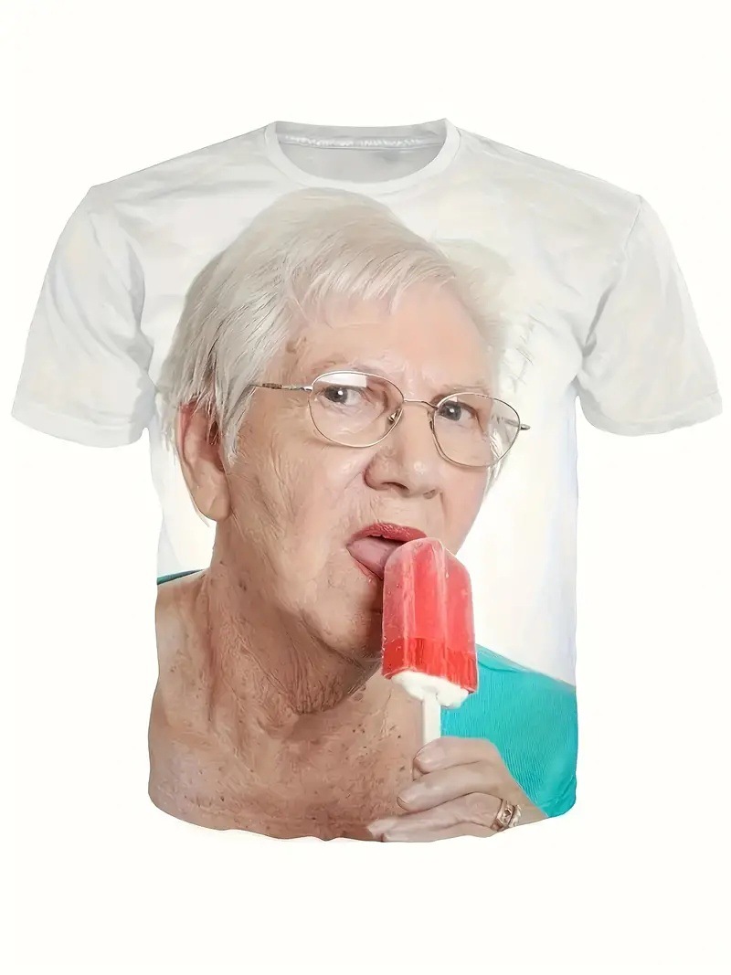 2024 venta caliente divertido paleta divertida leche vieja impresión 3D hombres suelta transpirable manga corta salvaje camiseta de cuello redondo