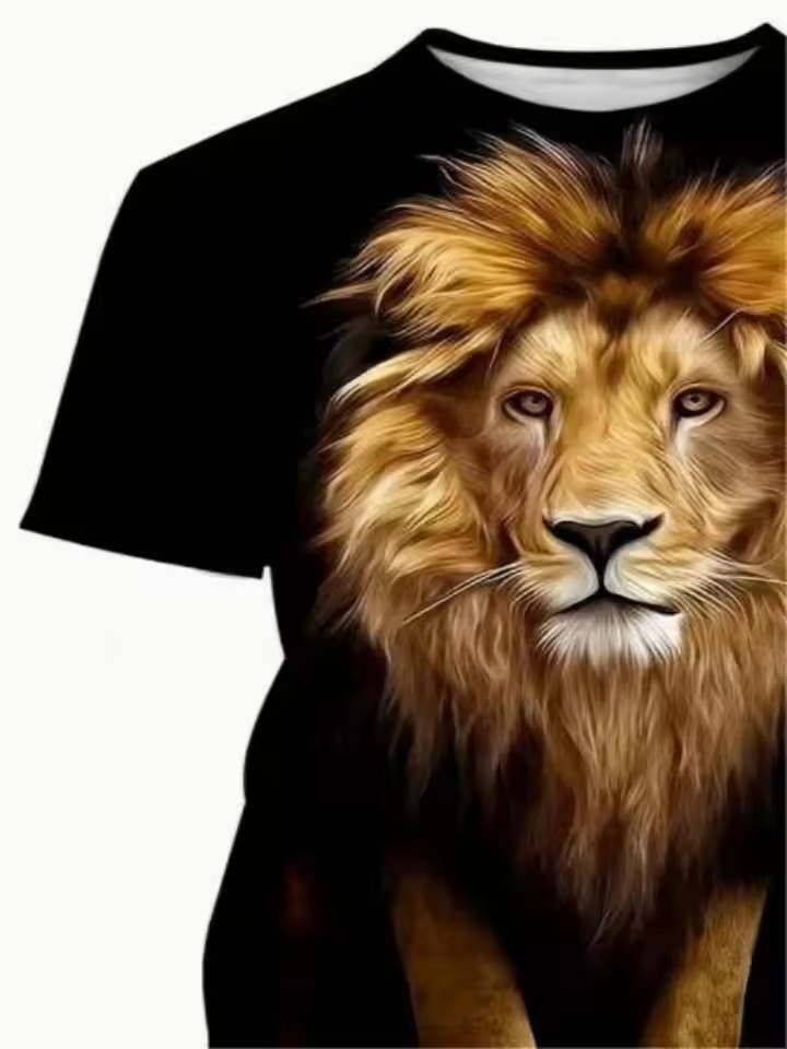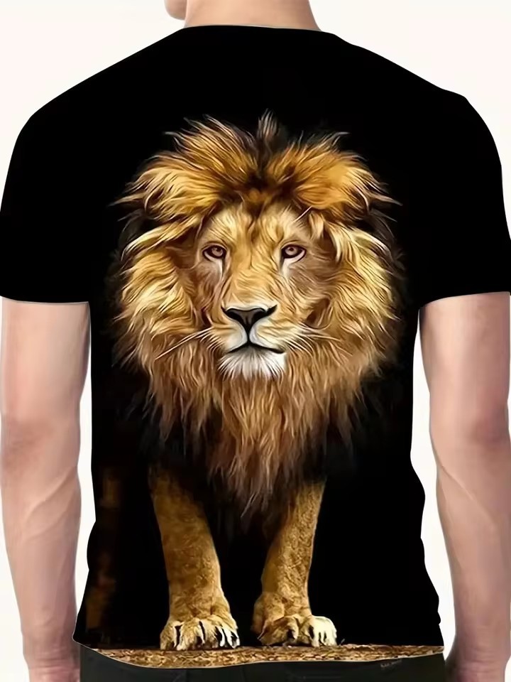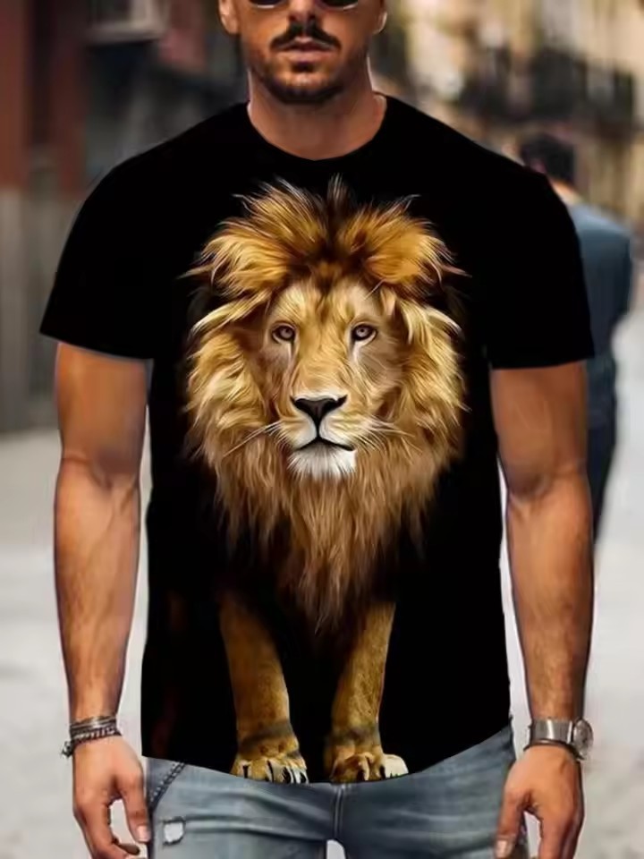 Forest Overlord Lion 3D Printed Men's High Street Personalidad suelta y transpirable de manga corta con cuello redondo Camiseta Ventas directas de fábrica
