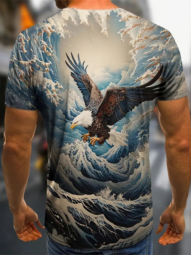 Tengyun Cross Sea Eagle 3D Printed Personalidad de verano para hombre Calle suelta y transpirable de manga corta con cuello redondo camiseta
