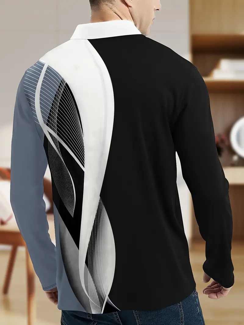 2024 venta caliente 3D impresión digital para hombres primavera y otoño deportes holgado transpirable manga larga botón cuello POLO camisa en stock