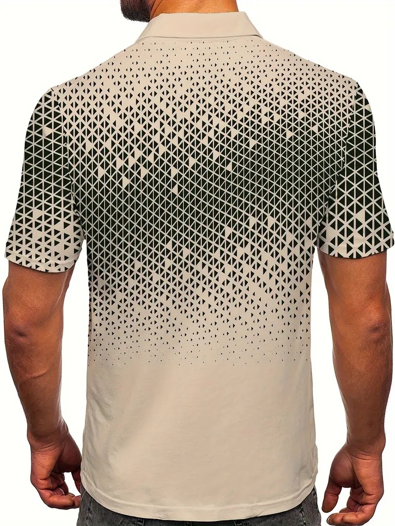 Simplicidad geométrica apilada impresión 3D malla de hombre transpirable de manga larga suelta chaqueta de polo camisa POLO de todo fósforo