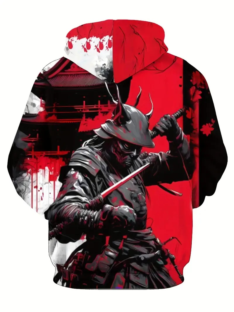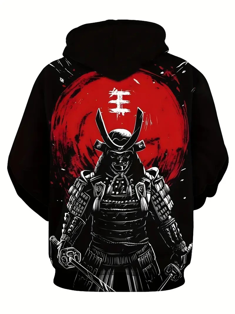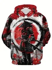 Venta caliente Tinta Jianghu Hero Swordsman Impresión 3D Hombres Moda callejera suelta de manga larga con cordón suéter con capucha