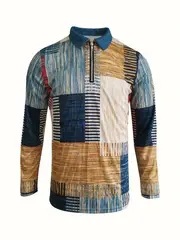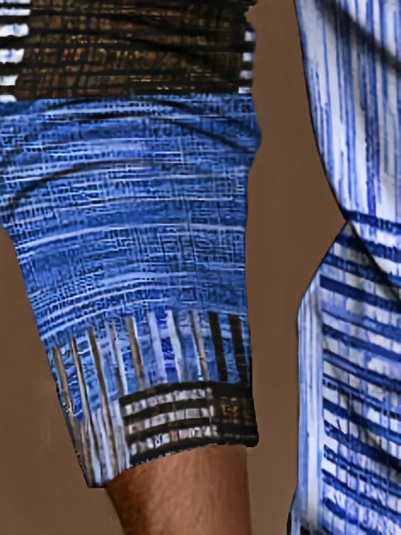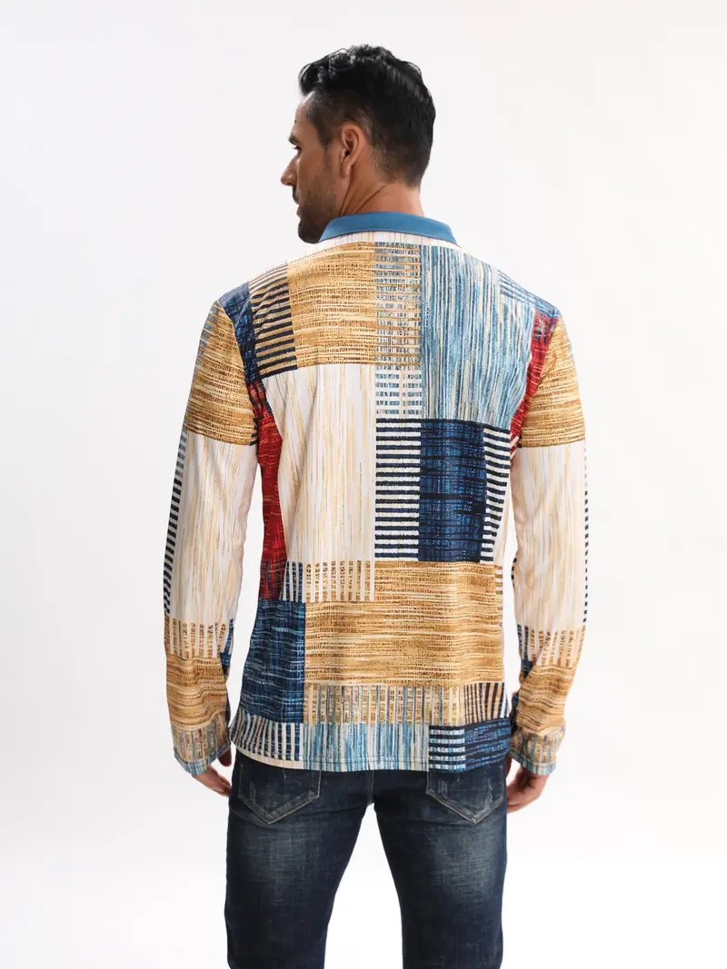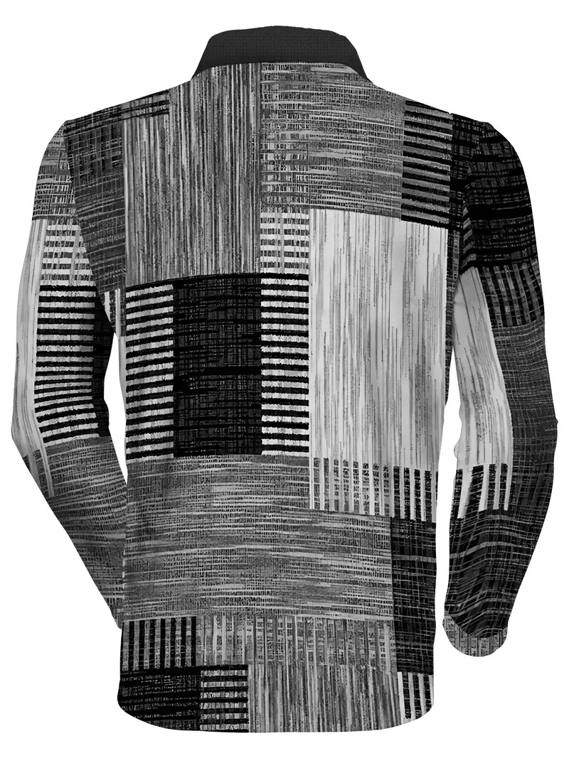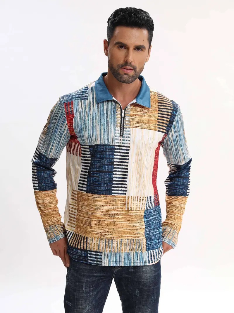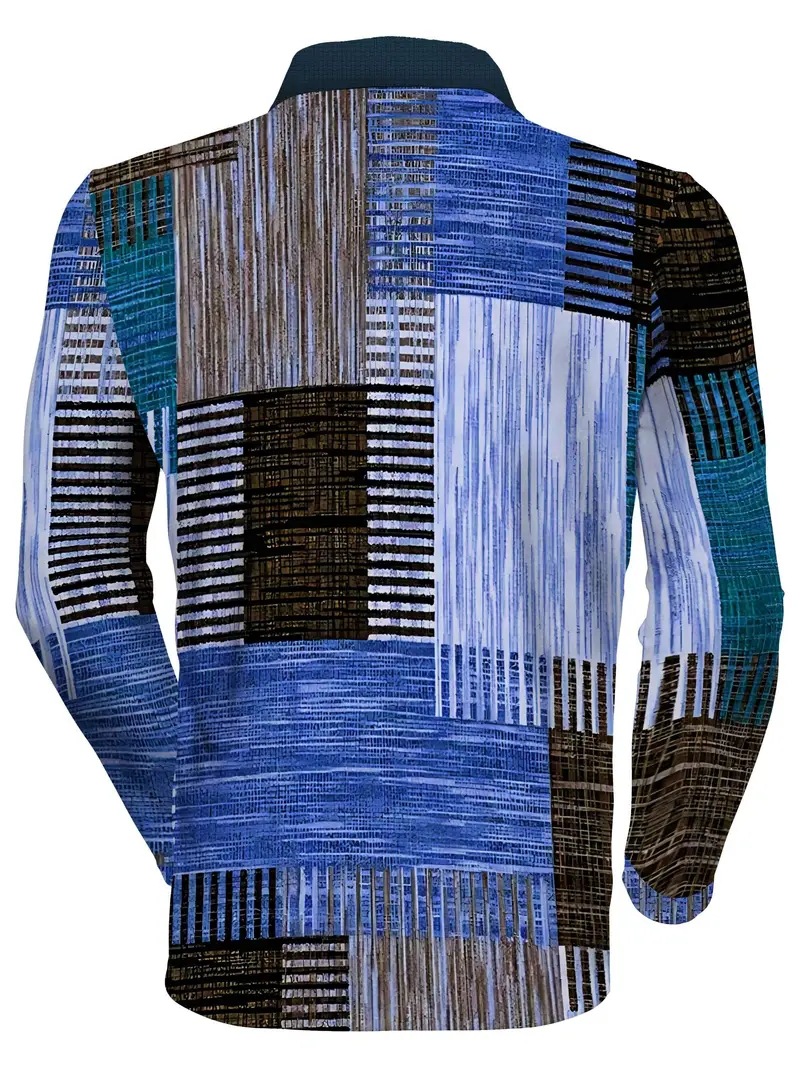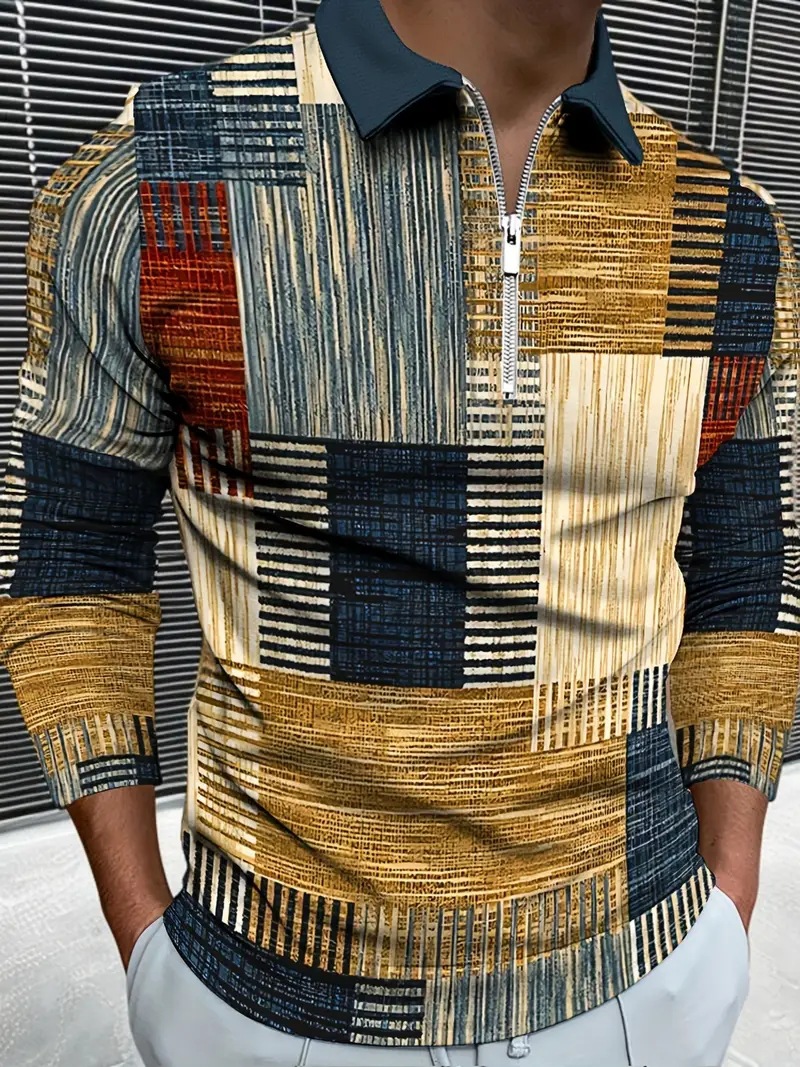 AliExpress transfronterizo línea geométrica de color 3D impresión hombres calle moda suelta cremallera camisa POLO