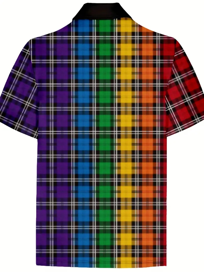 Camisa POLO de manga corta con cremallera de solapa suelta casual de todo fósforo para hombre con estampado 3D cuadrado de color retro clásico simple