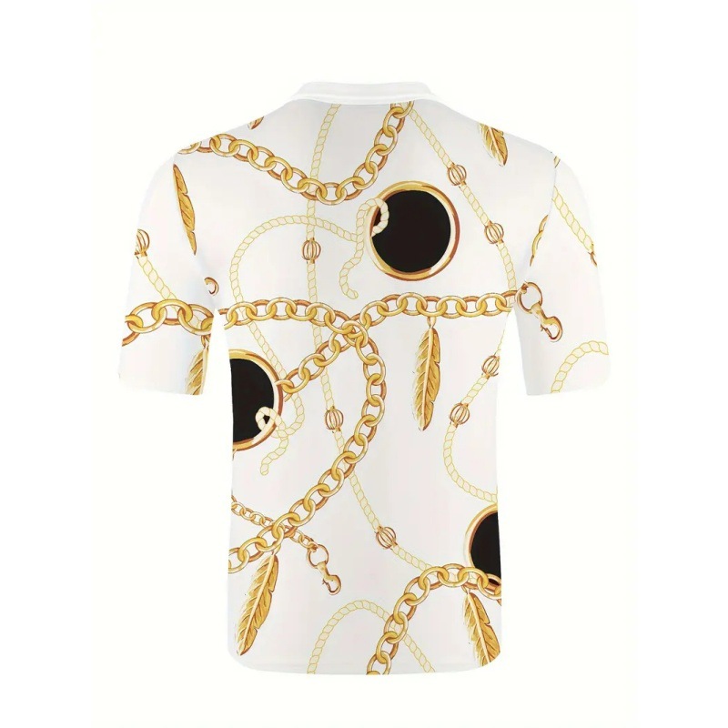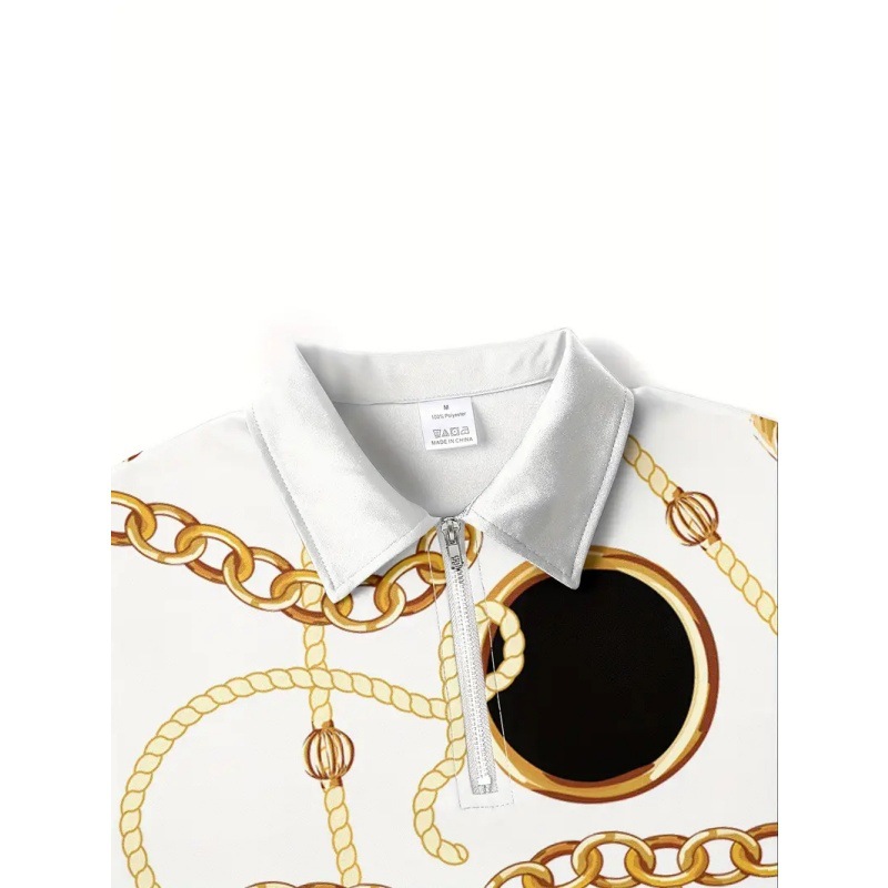 Hombre europeo y americano calle todo fósforo cadena de oro impresión 3D transpirable suelta solapa cremallera camisa POLO traje de polo de manga corta