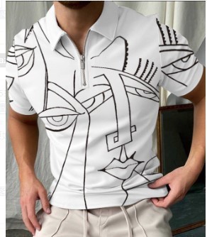 Deportes de verano para hombres, solapa suelta transpirable, cremallera de manga corta, chaqueta de polo, camisa POLO de todo fósforo, impresión 3D de moda