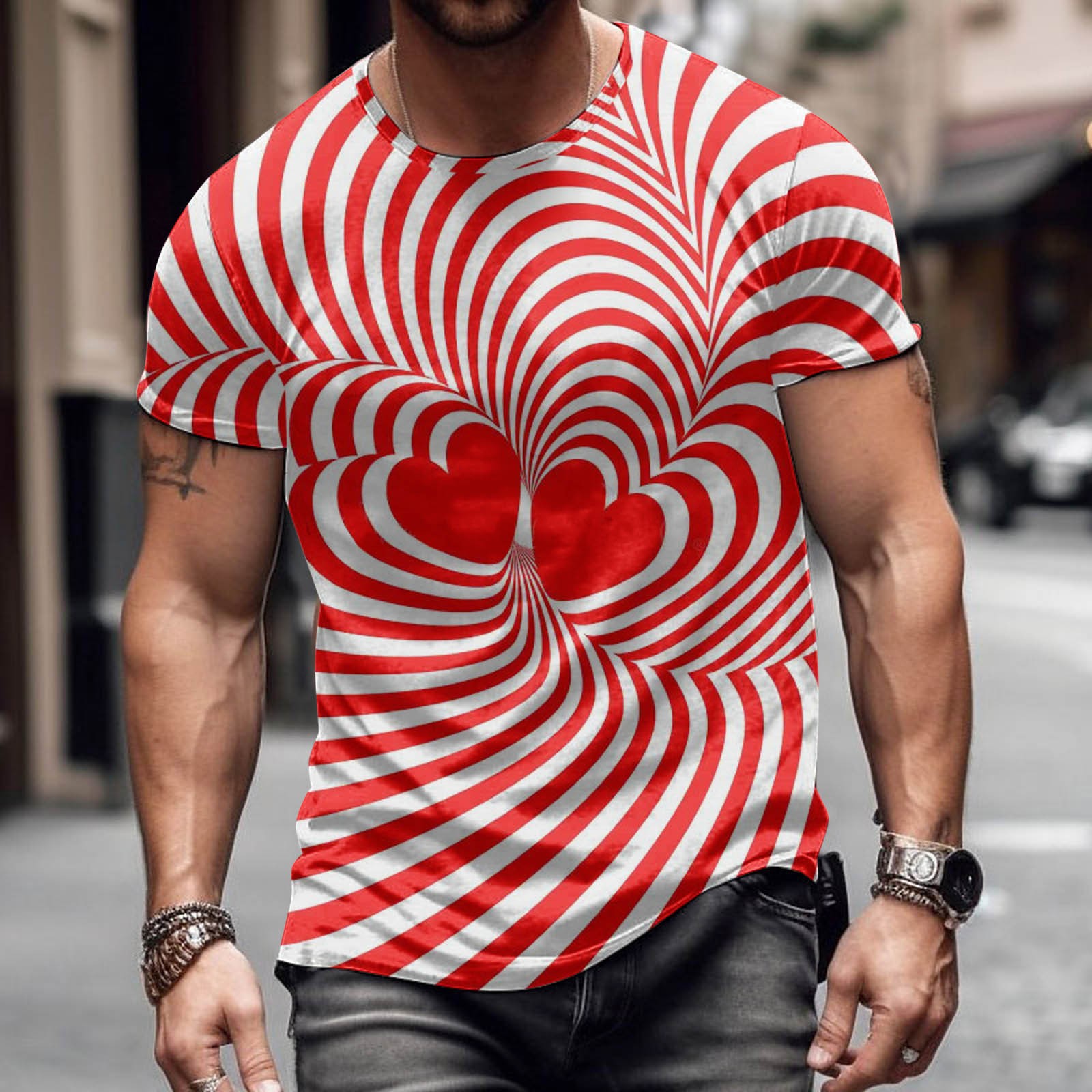 Moda romántica Día de San Valentín colorido amor 3D cepillado lleno de impresión de los hombres calle alta suelta transpirable camiseta de manga corta en stock