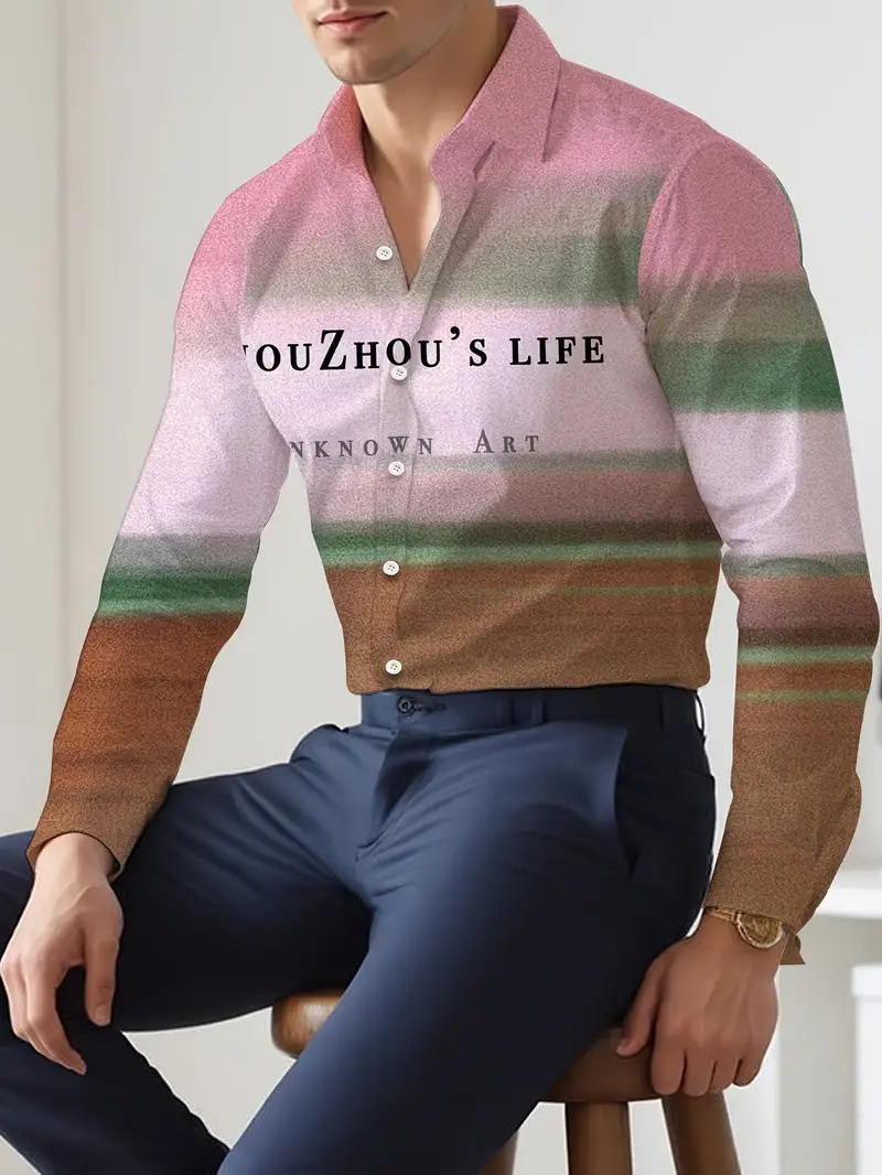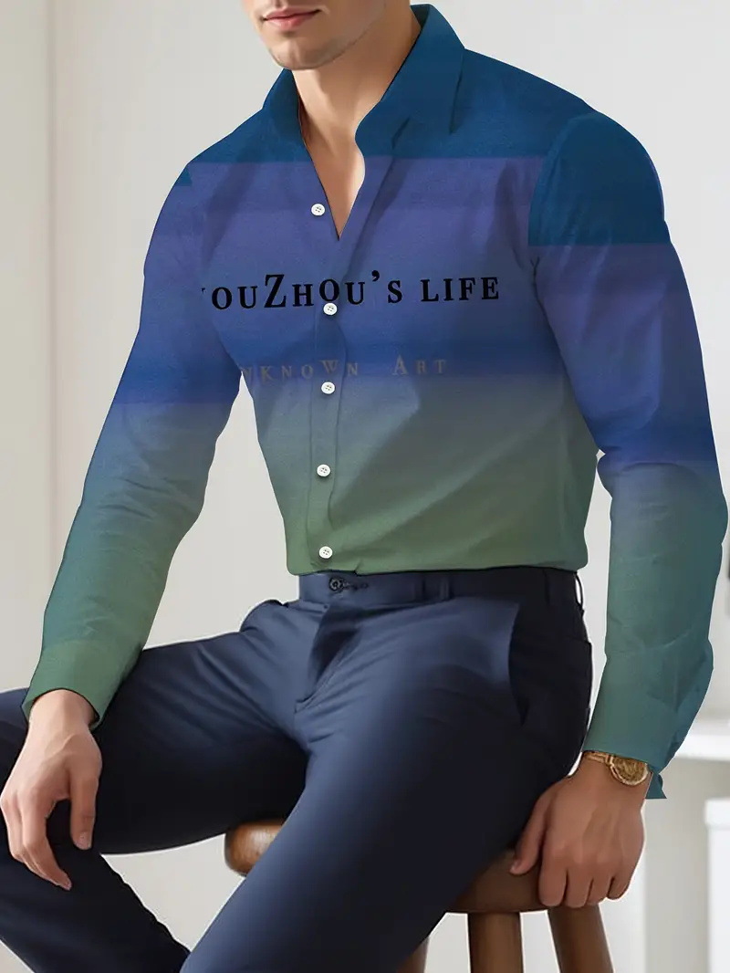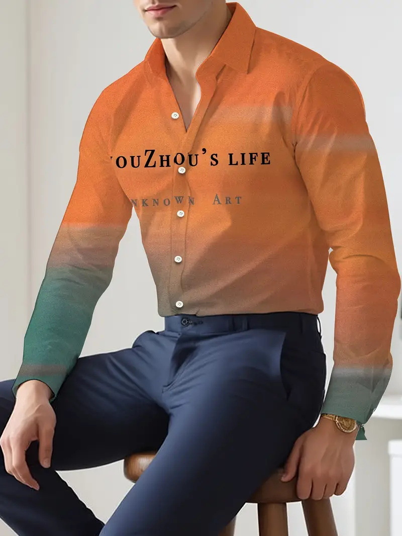 Camisa de botones de manga larga 2024 nuevos hombres de alta calidad con letras degradadas holgadas y cómodas blusas MB12