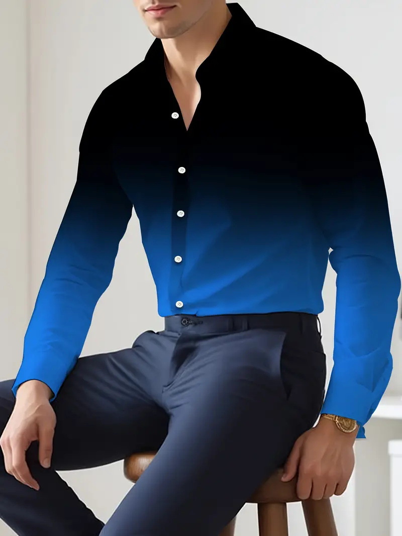 Hombres europeos y americanos 2024 nueva moda suelta degradada camisa de manga larga top se puede usar afuera MB12
