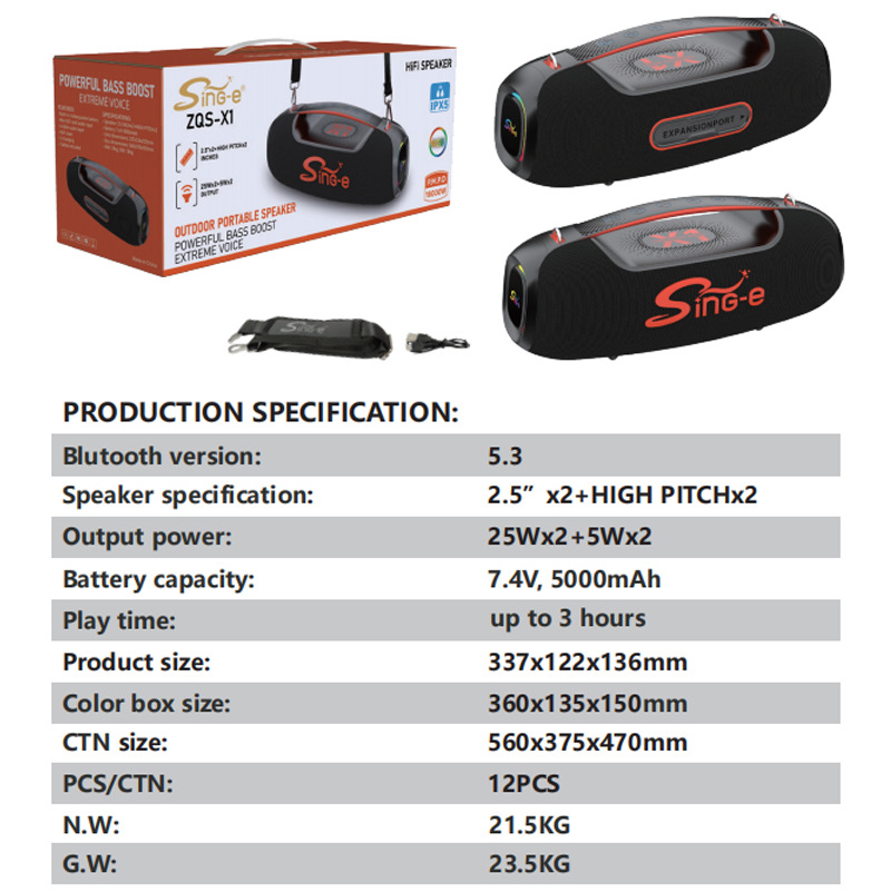 Altavoz Bluetooth ZQS-L21 con doble bocina, portátil recargable RGB, ideal para exteriores y fiestas