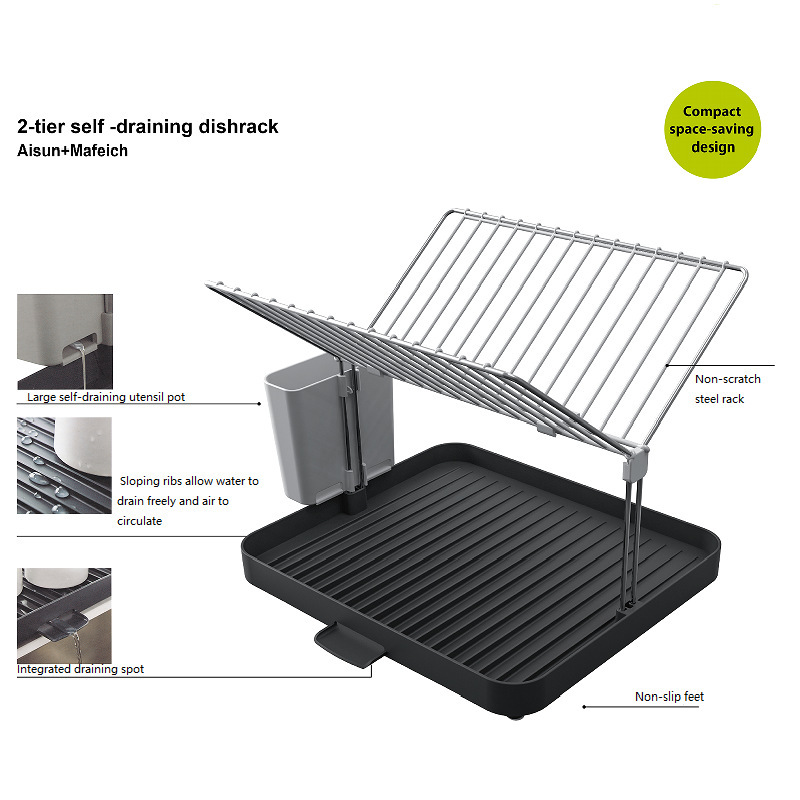 Platos de cocina Rejilla de drenaje de utensilios de almacenamiento de platos Rejilla en capas Platos de acero inoxidable Rejilla de drenaje de escritorio