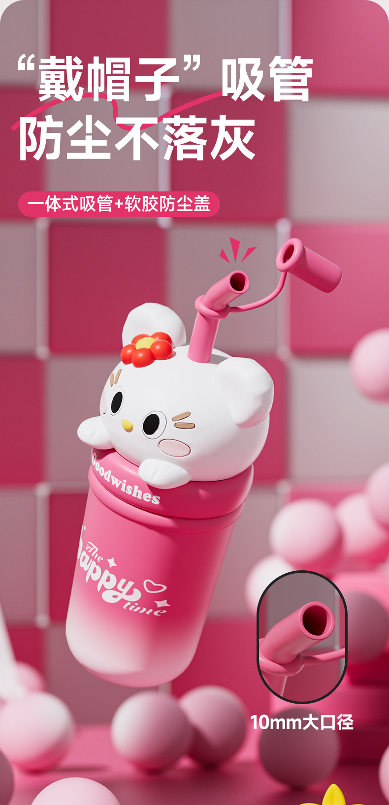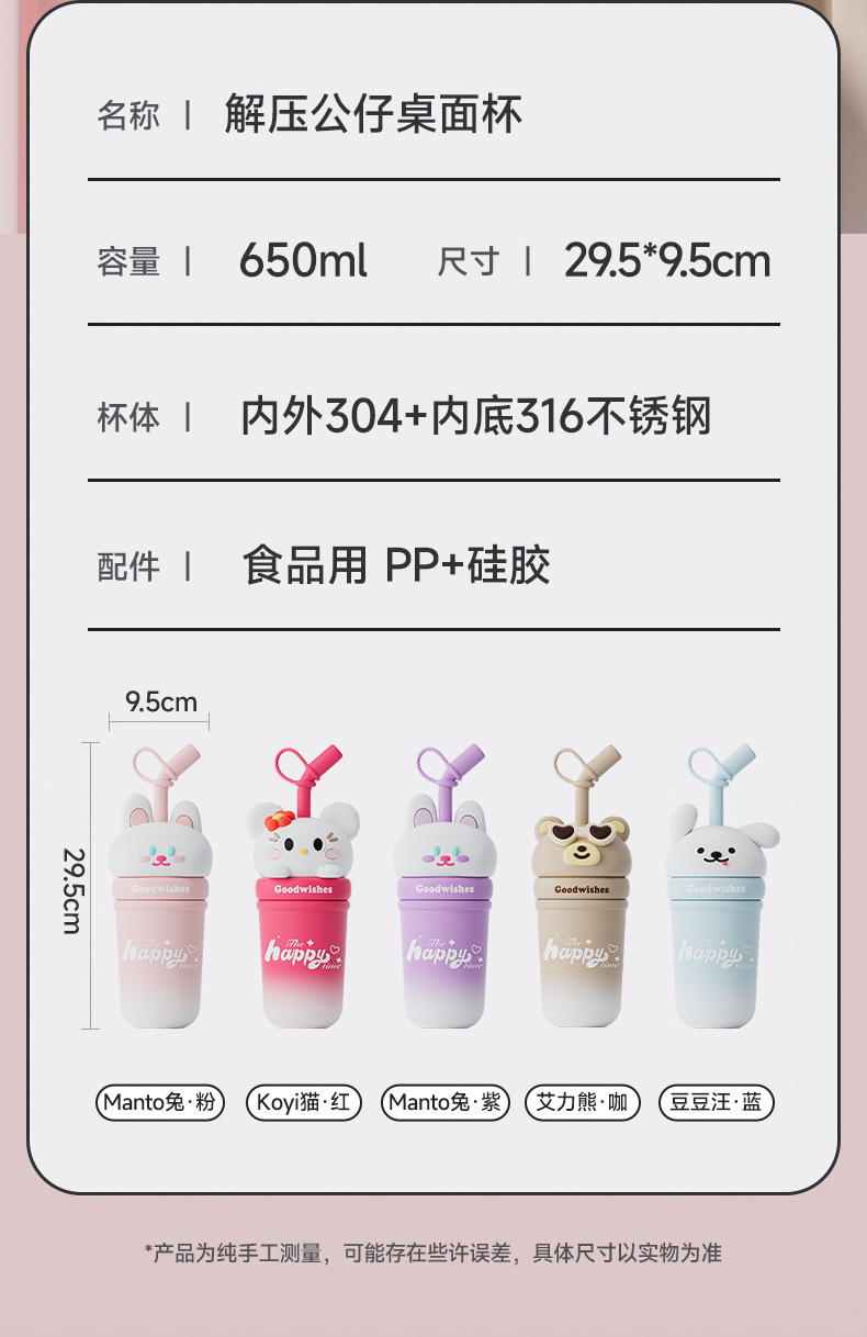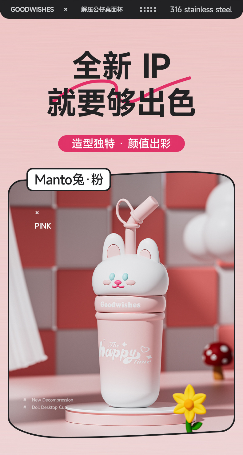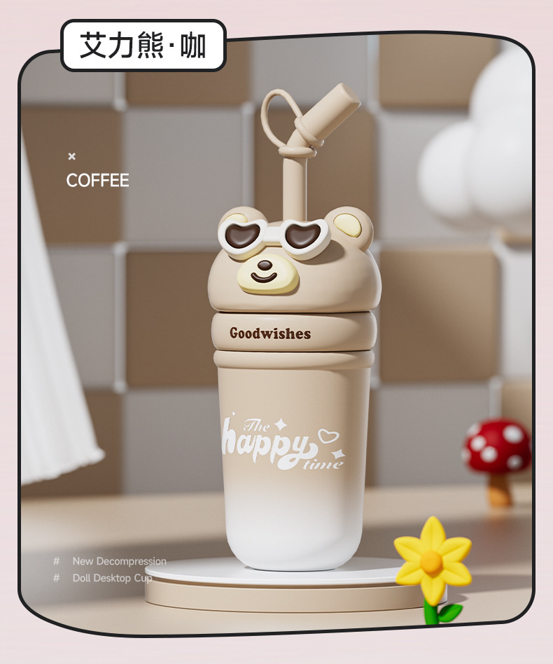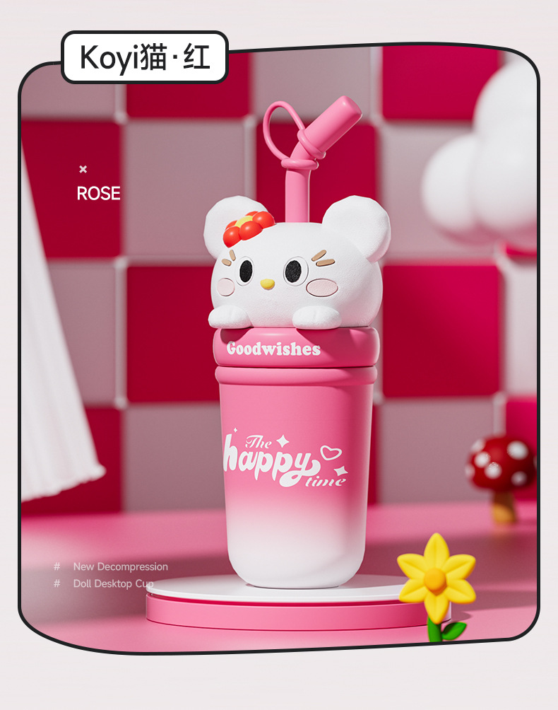 Muñeca descomprimida niña acero inoxidable preservación del calor taza de agua pajita de alto valor y gran capacidad estudiante portátil y lindo