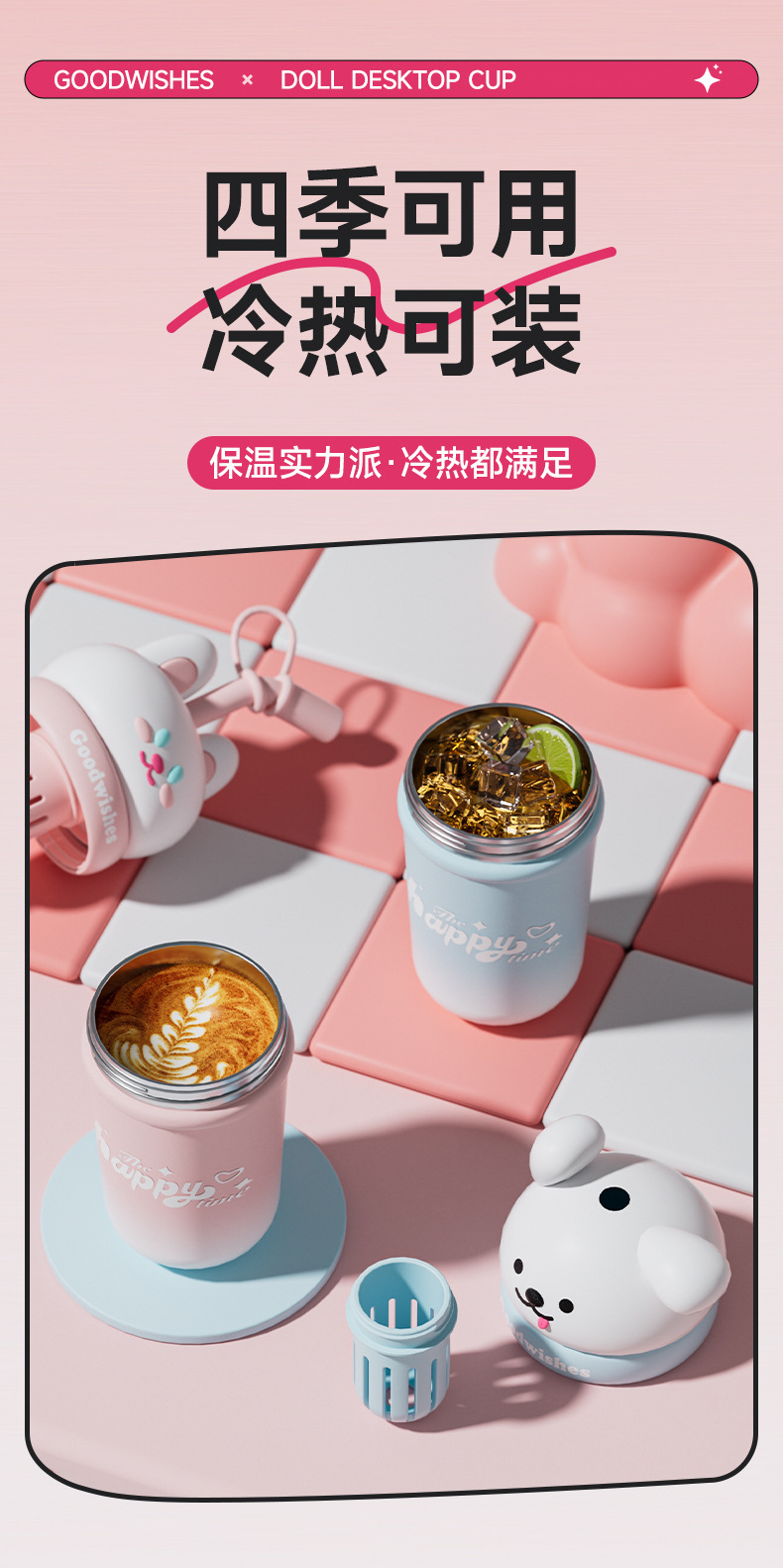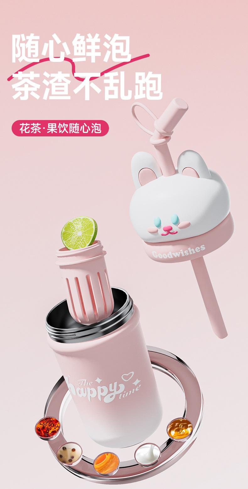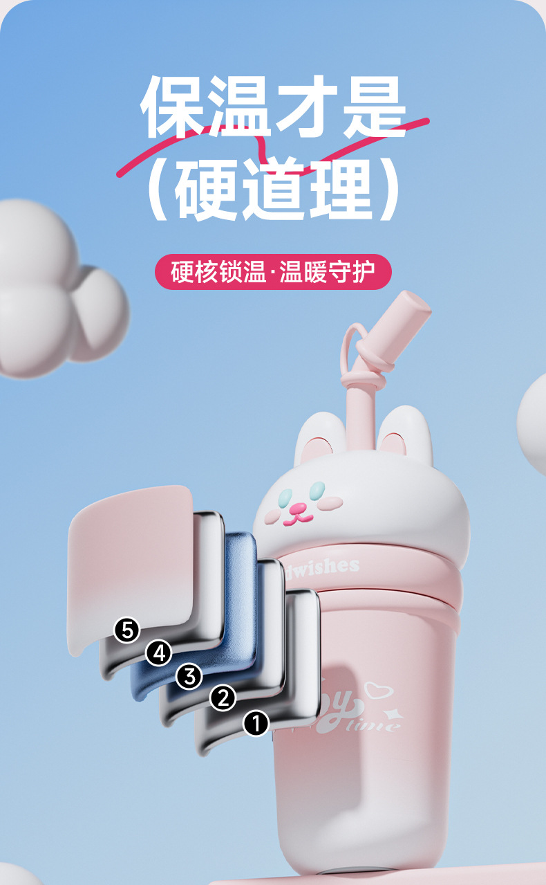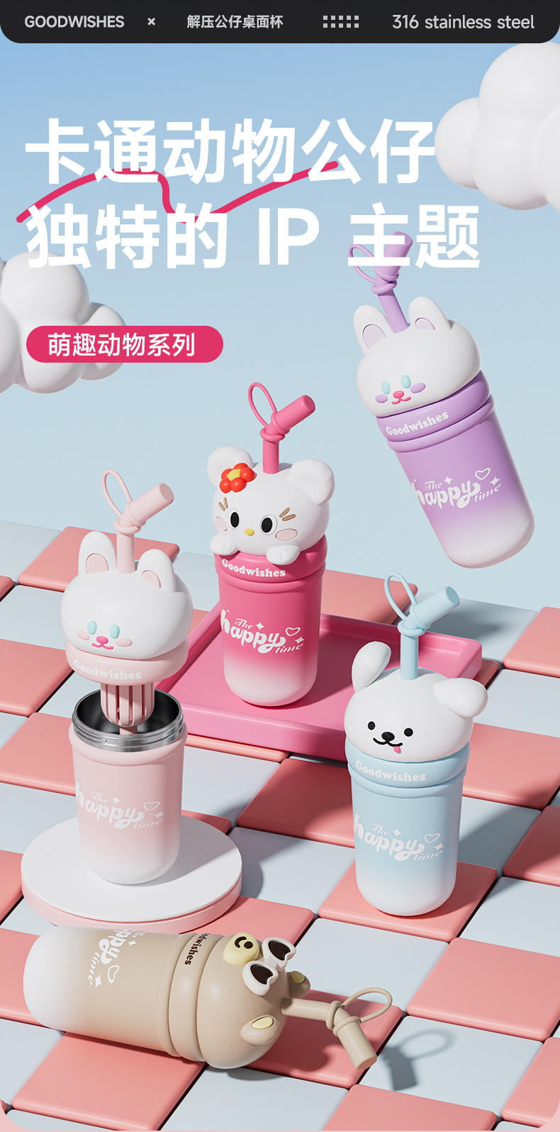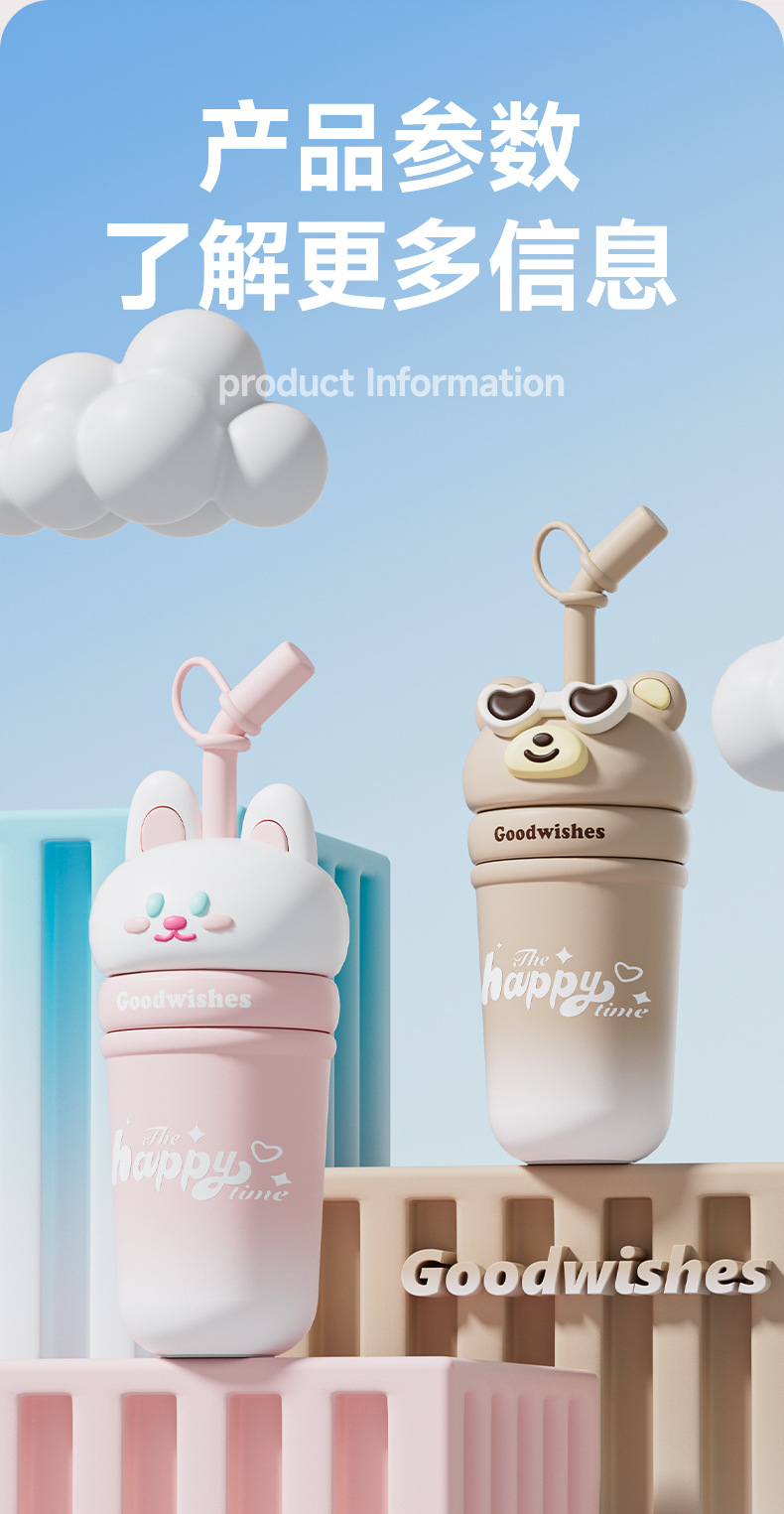 Muñeca descomprimida niña acero inoxidable preservación del calor taza de agua pajita de alto valor y gran capacidad estudiante portátil y lindo