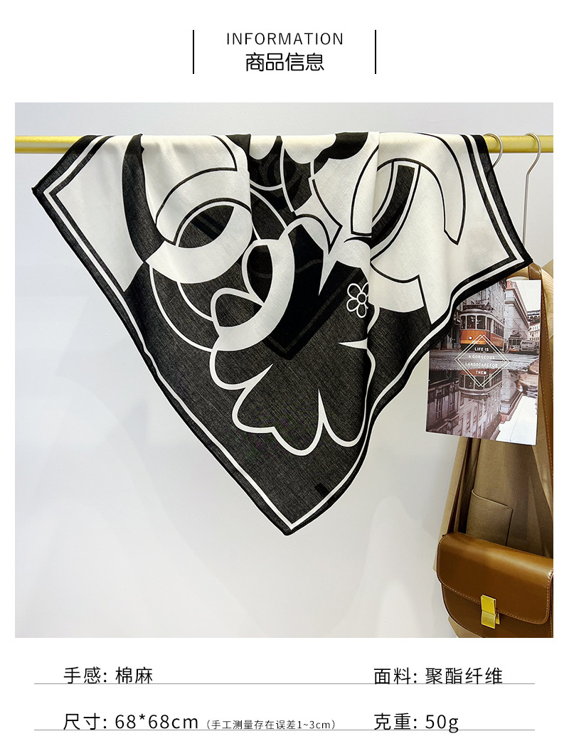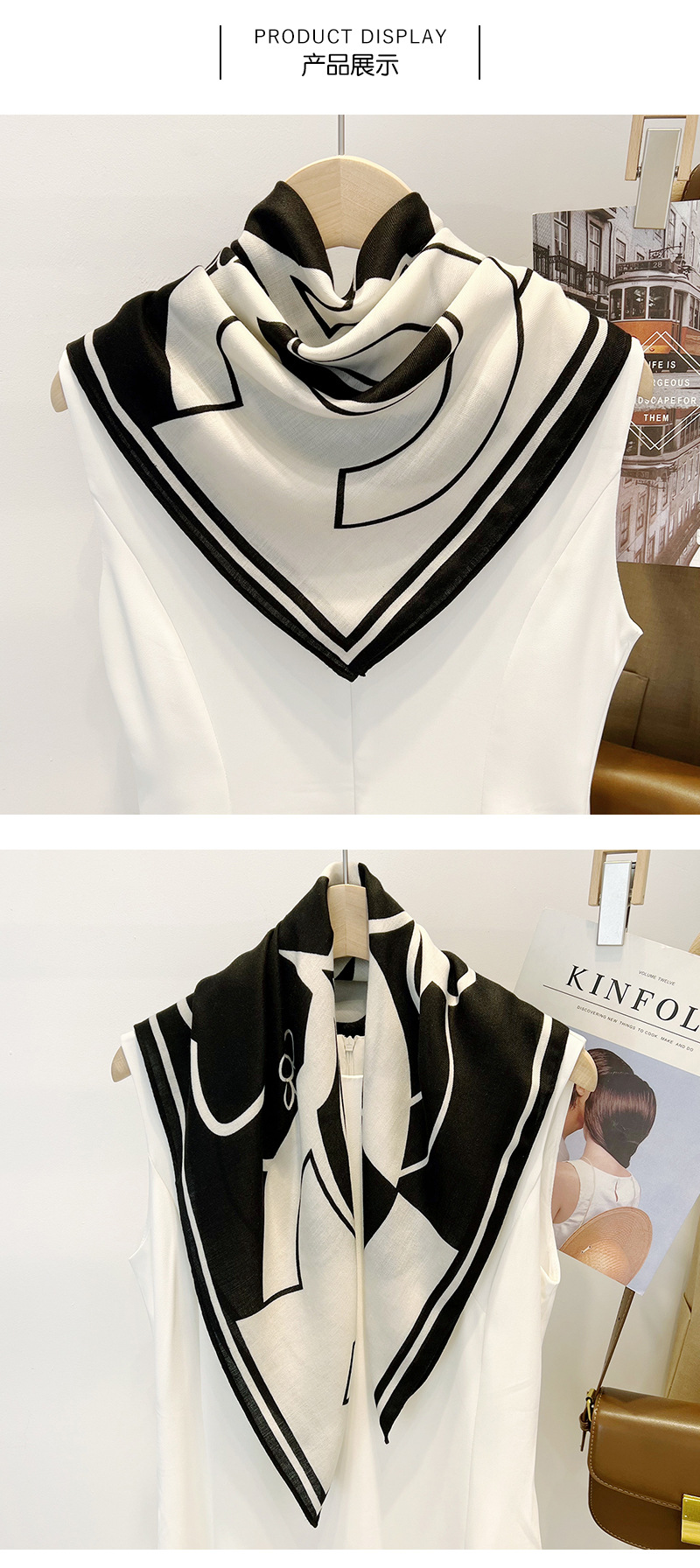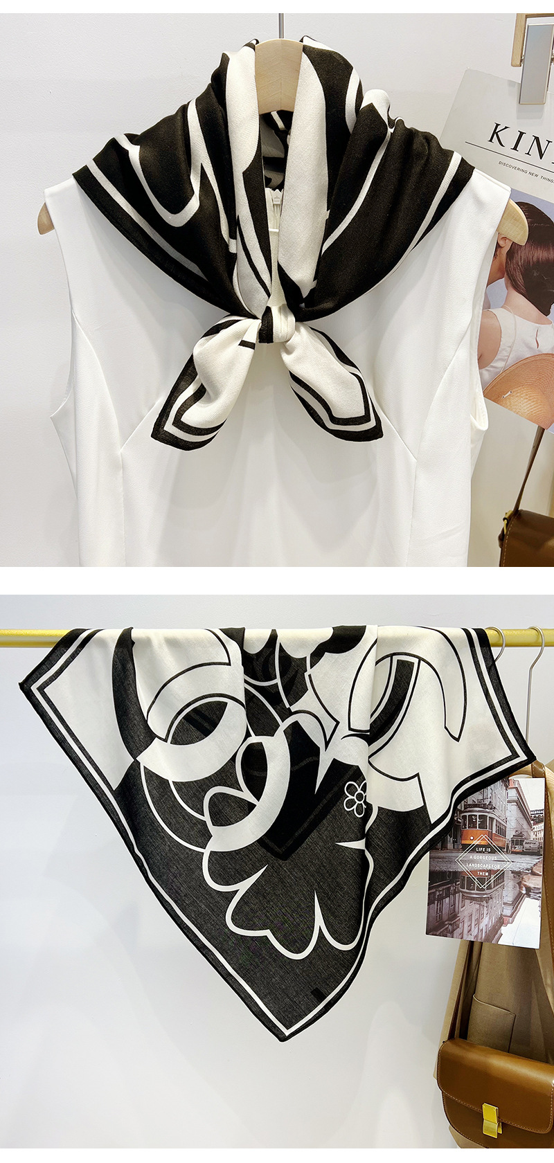 2025 nueva bufanda de seda de camelia en blanco y negro con bloques de color de estilo japonés y coreano, bufanda cuadrada versátil para combinar todos los días con trajes y camisas