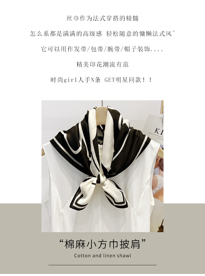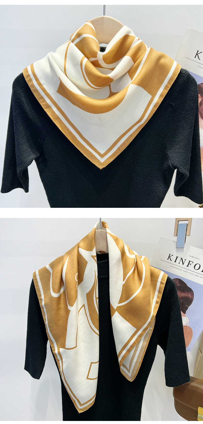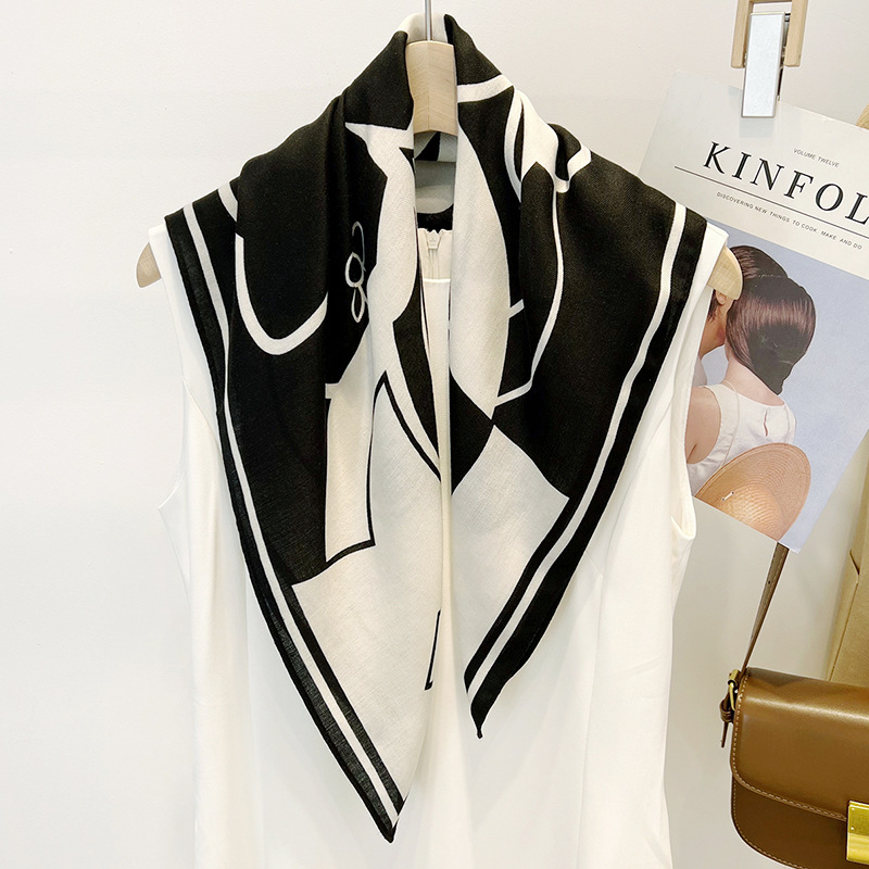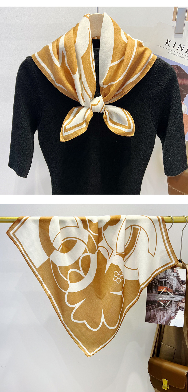 2025 nueva bufanda de seda de camelia en blanco y negro con bloques de color de estilo japonés y coreano, bufanda cuadrada versátil para combinar todos los días con trajes y camisas