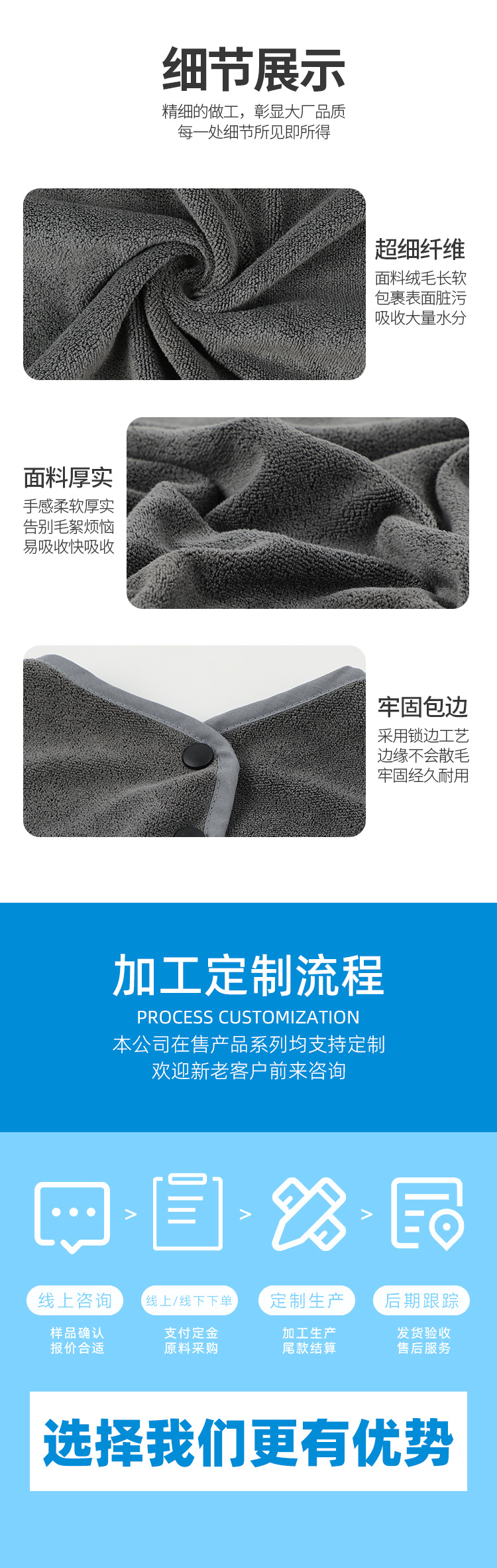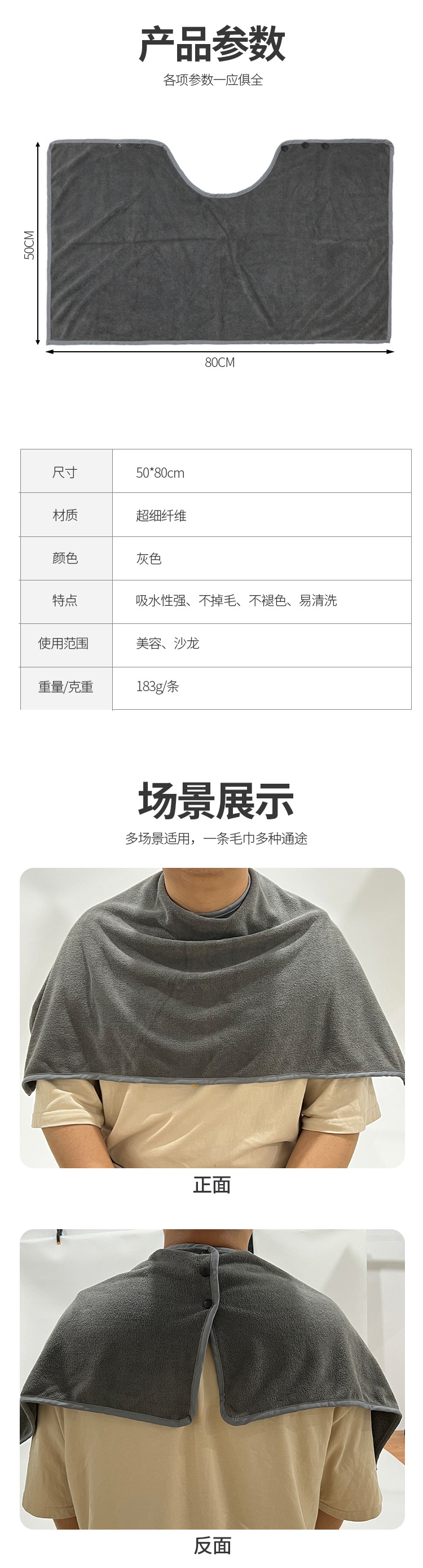 Chal de belleza de microfibra al por mayor, borde firme, hebilla conveniente, salón de belleza, chal profesional, absorción de agua, secado rápido