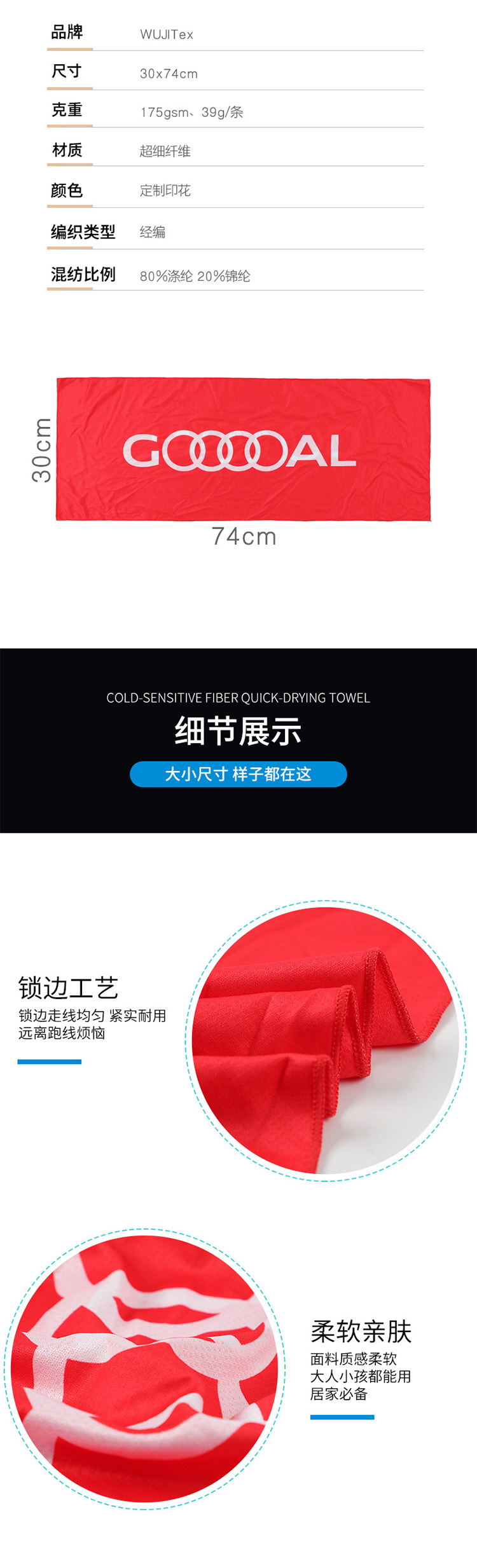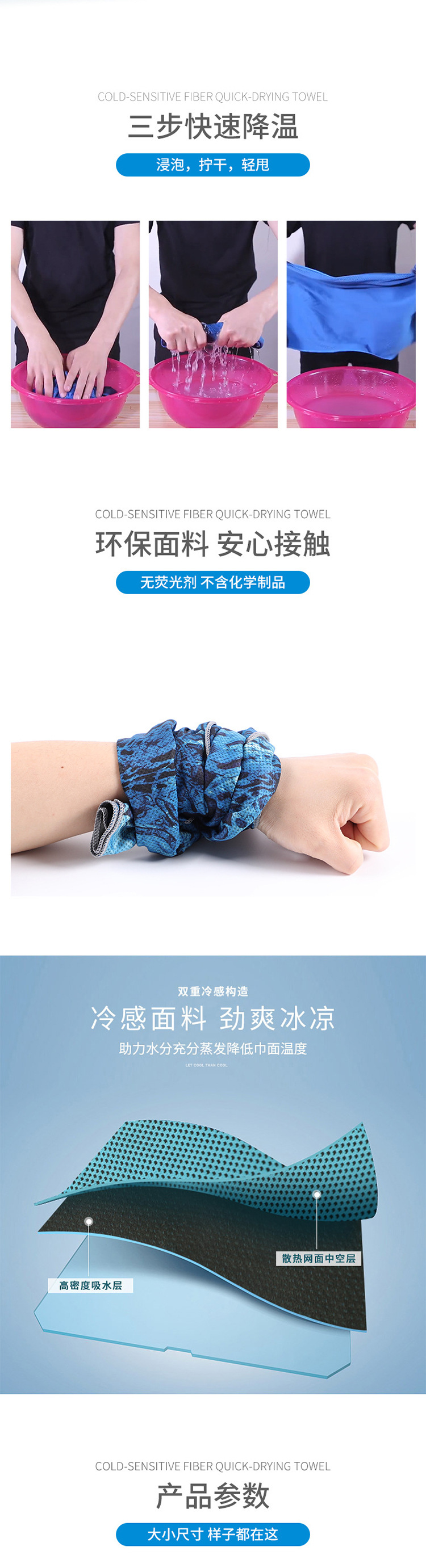 Toalla deportiva de suministro directo de fábrica Toalla de enfriamiento de microfibra Toalla de sensación de hielo de secado rápido Toalla de enfriamiento de seda de hielo Toalla absorbente de sudor