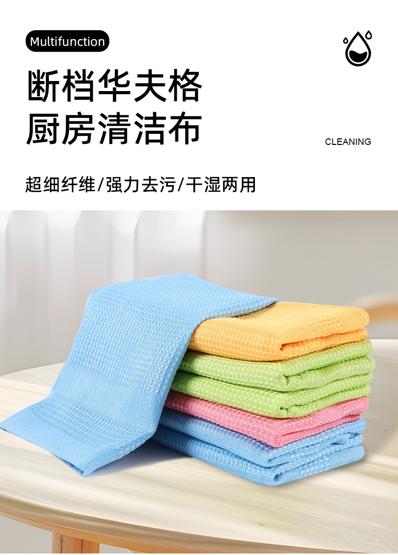 Toalla cuadrada de limpieza de gofres de microfibra al por mayor de fábrica, absorción de agua, descontaminación, sin dejar marcas de agua, trapo multifuncional
