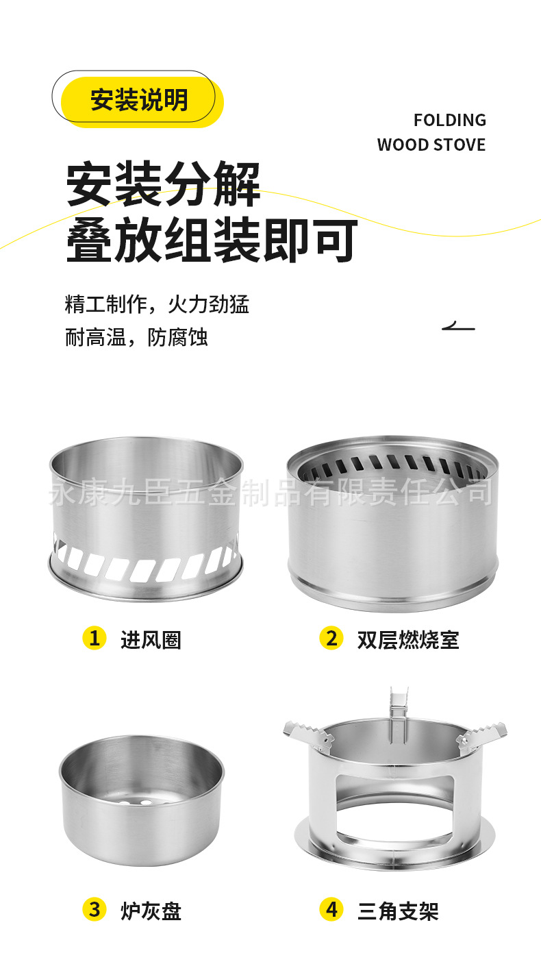 Picnic portátil al aire libre, camping, barbacoa, leña a prueba de viento de acero inoxidable, estufa de carbón, estufa de alcohol, fabricante de estufas