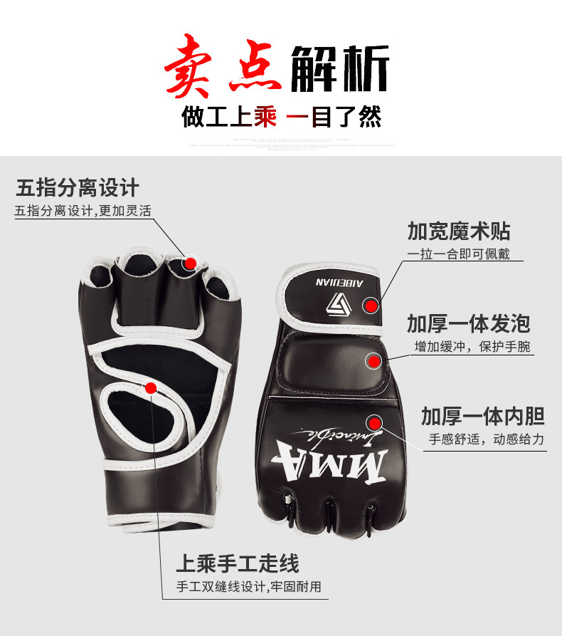 Adultos niños Sanda entrenamiento MMA Thai boxeo lucha saco de boxeo hombres y mujeres medio dedo guantes boxeo