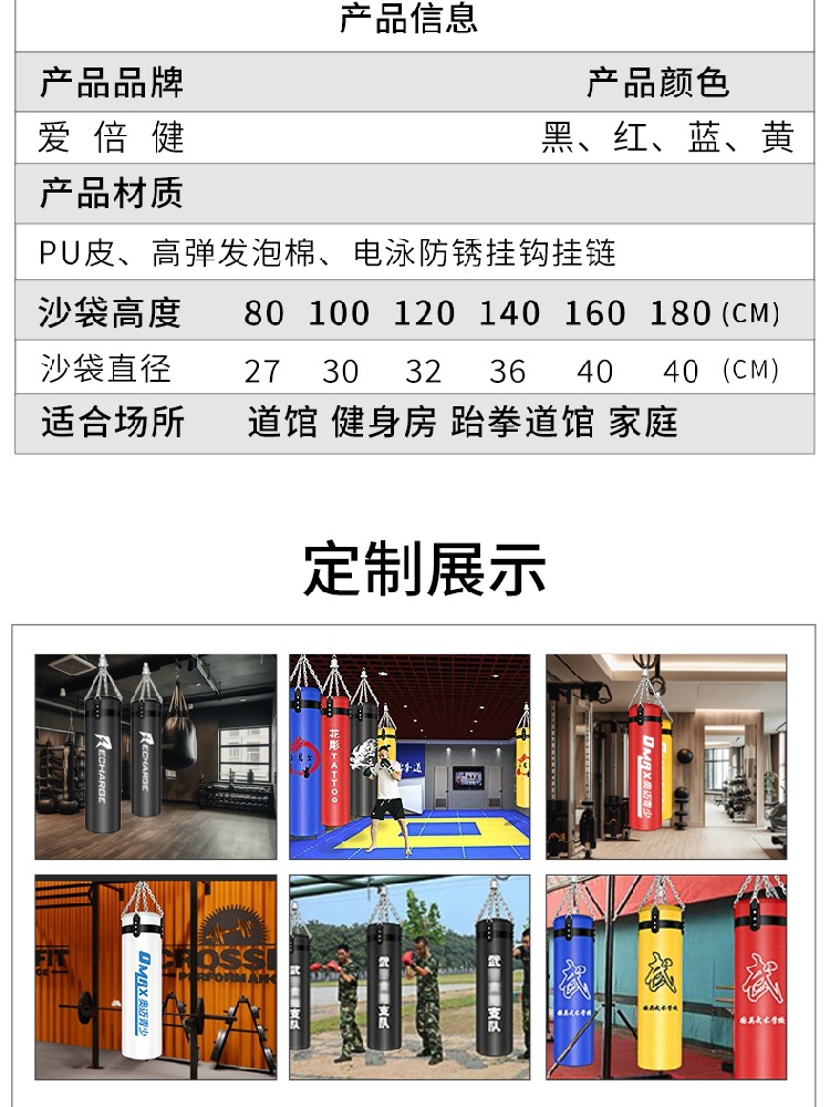 Saco de arena de boxeo profesional personalizado Aibeijian Saco de arena Saco de arena hueco sólido colgante Saco de arena Sanda de lucha