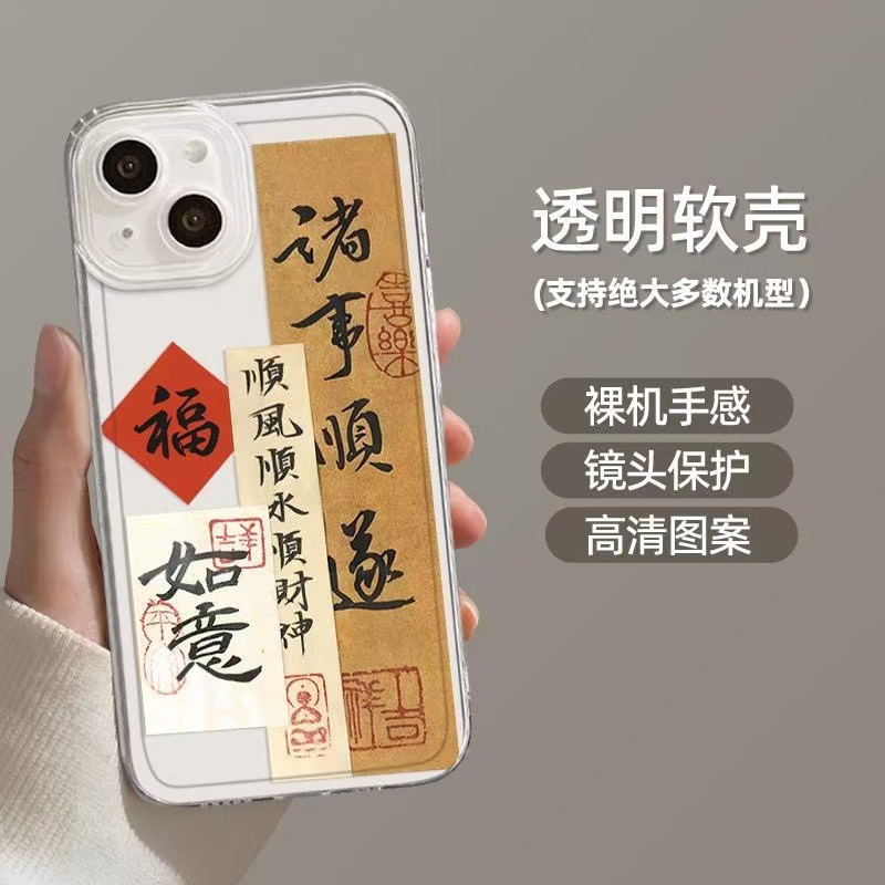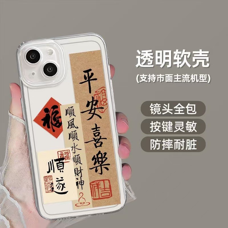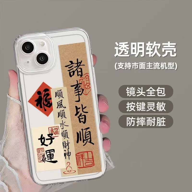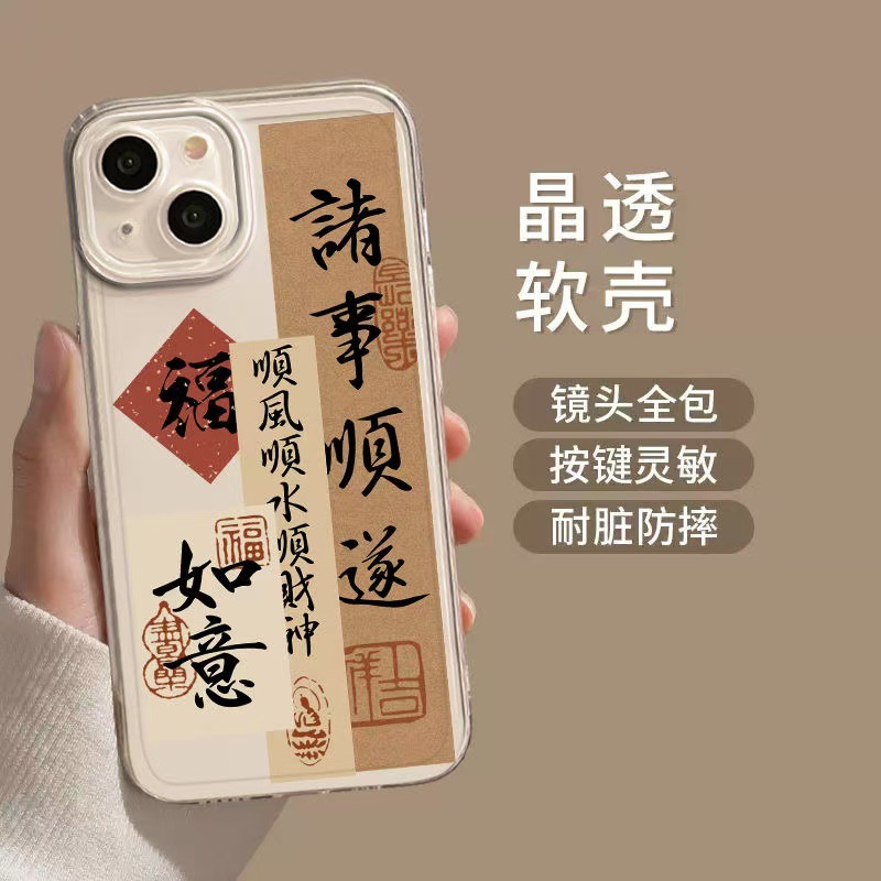Nueva aplicación iphone16promax funda para teléfono transparente Apple 15 anti-caída 14pro Guofeng 13/12/11x