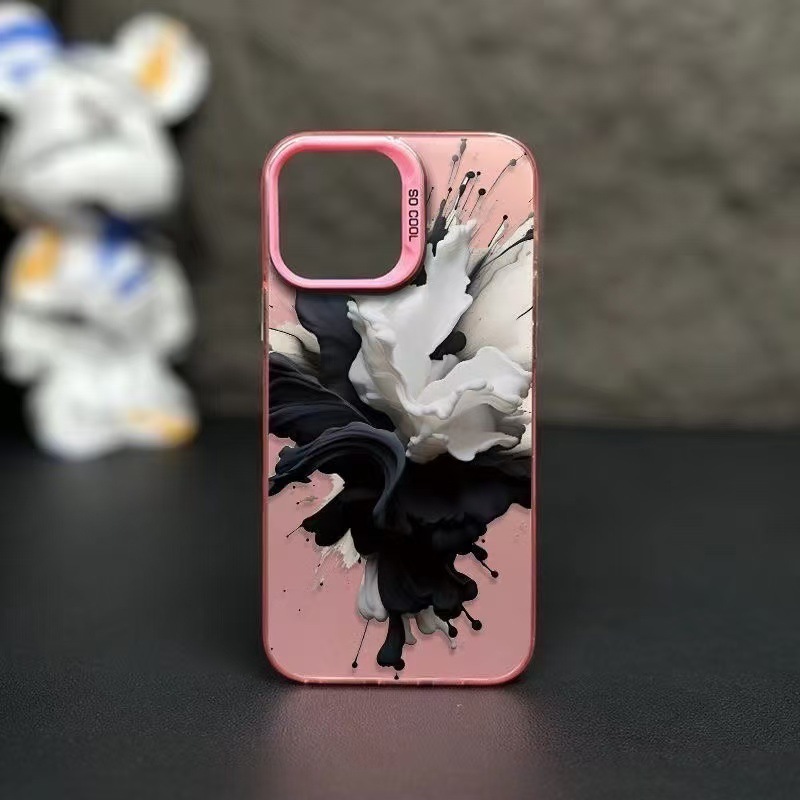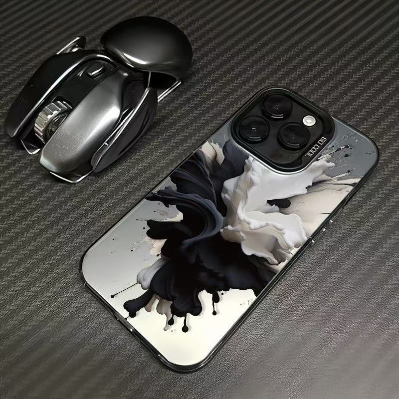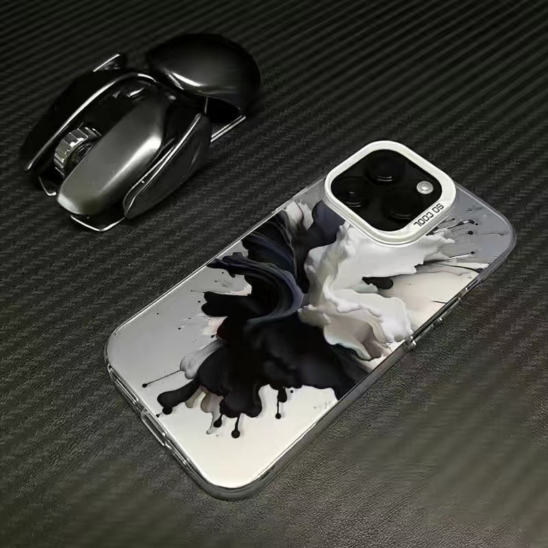 Tinta en blanco y negro para iPhone 16 funda para teléfono móvil 11 Apple 15promax/14 anti-caída 13pro estilo europeo y americano 12