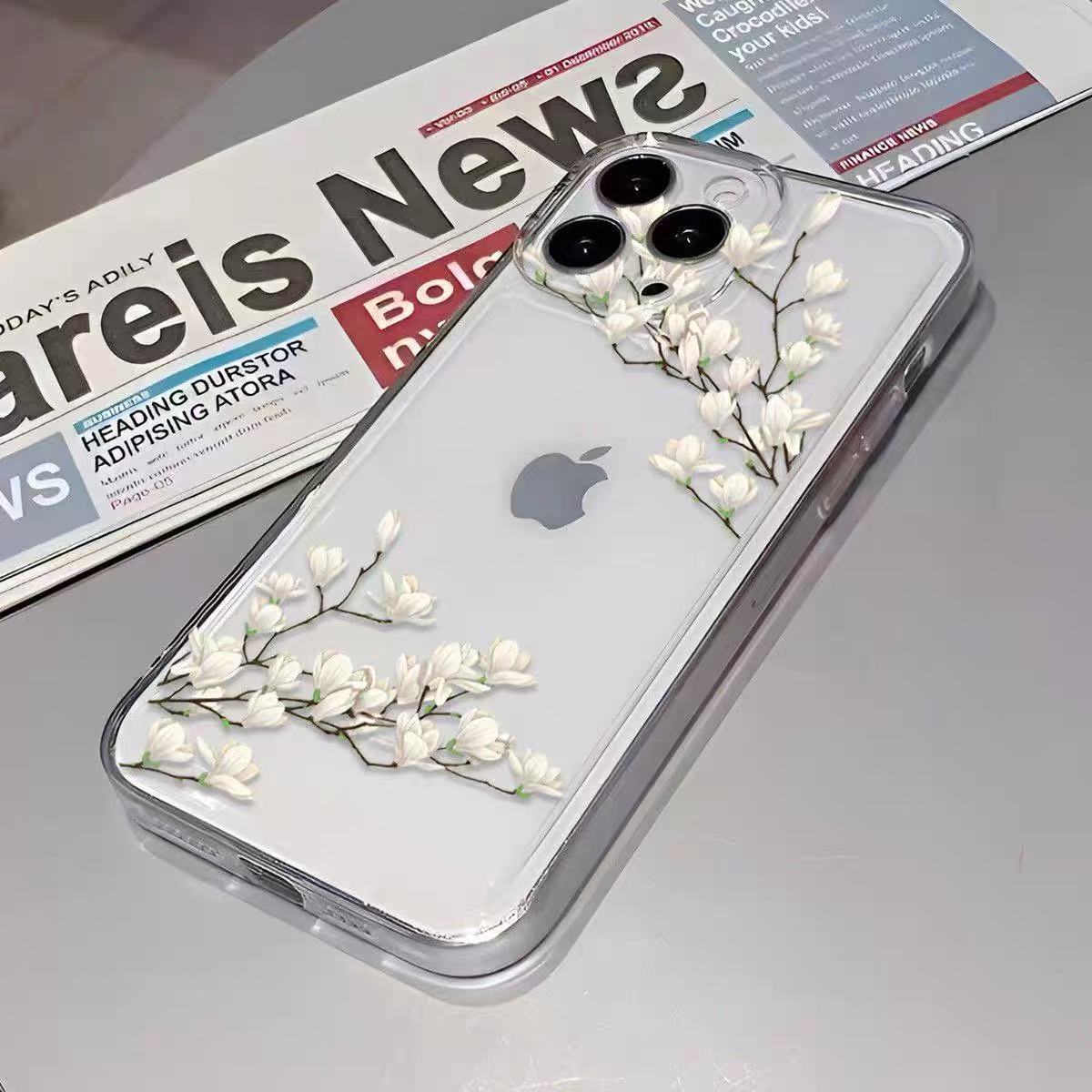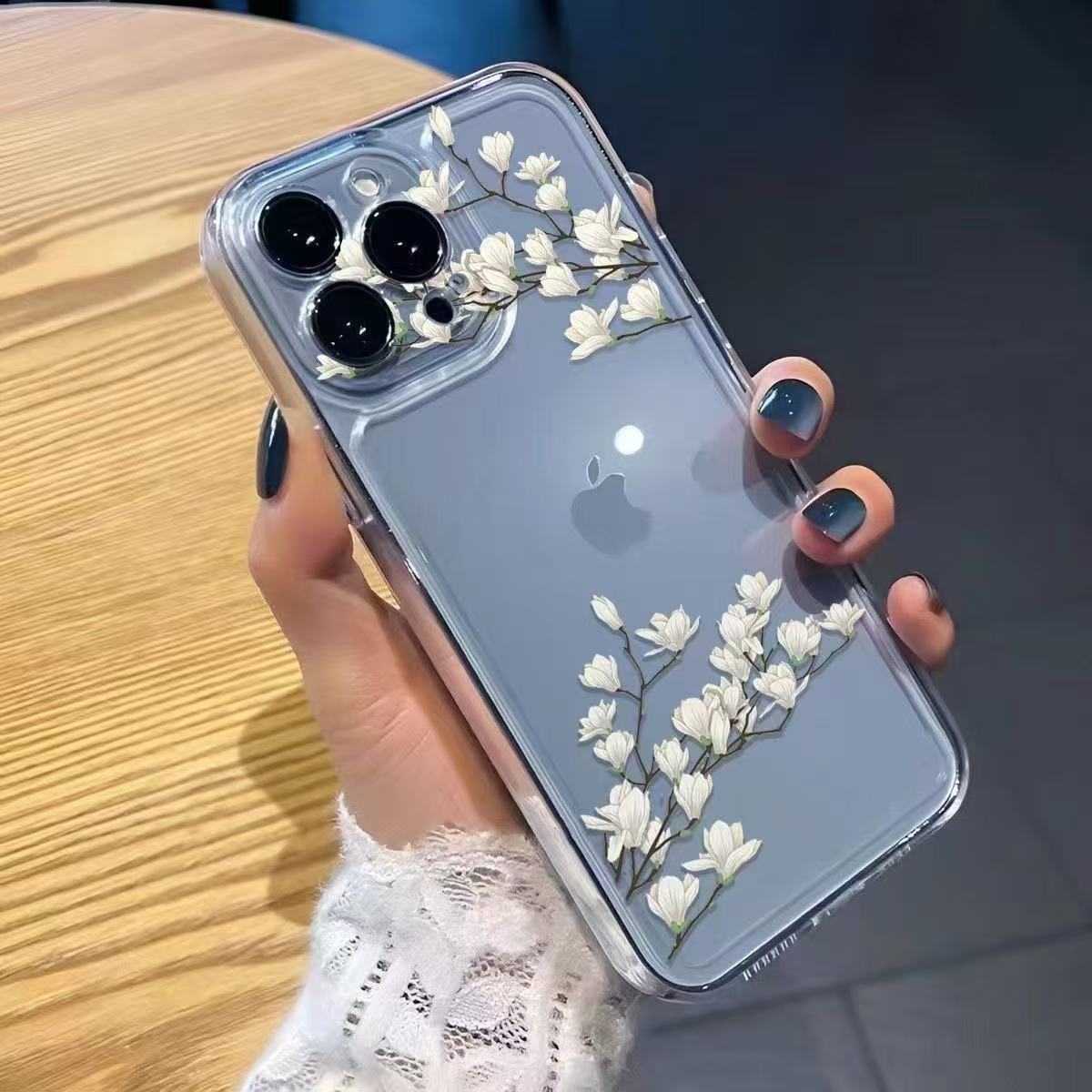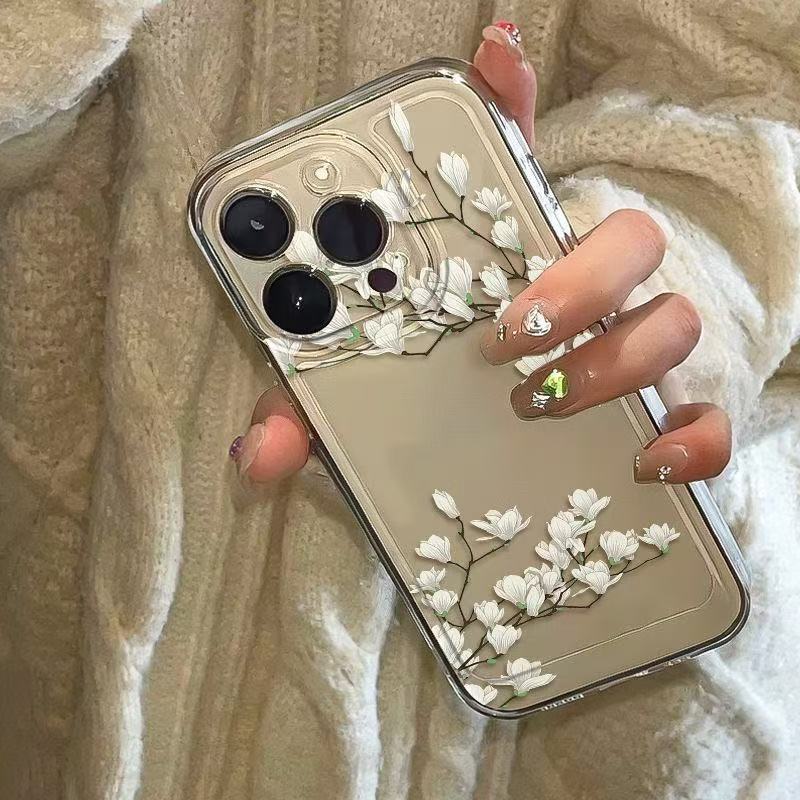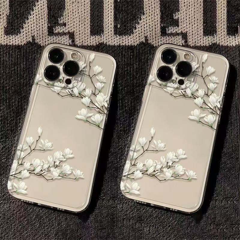 White Orchid para iphone16promax funda para teléfono móvil transparente 11 Apple 15 anti-caída 14pro Japón y Corea 13/12