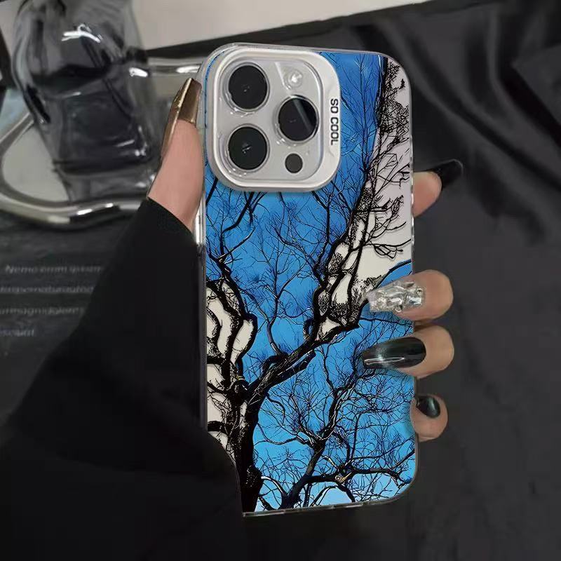 Blue Sky Dead Tree Adecuado para Apple 16Promax Funda para teléfono móvil Personalidad Yuan Qi Shell iPhone15/14/13 Texto 12